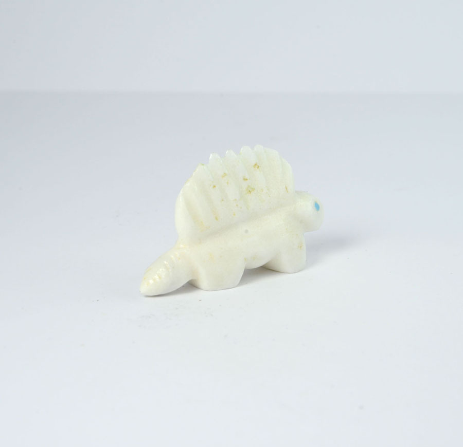 Zuni Stachelschweinetisch aus weißem Calcit mit Augen aus Türkis.. Dieses Stachelschwein ist ein Unikat.