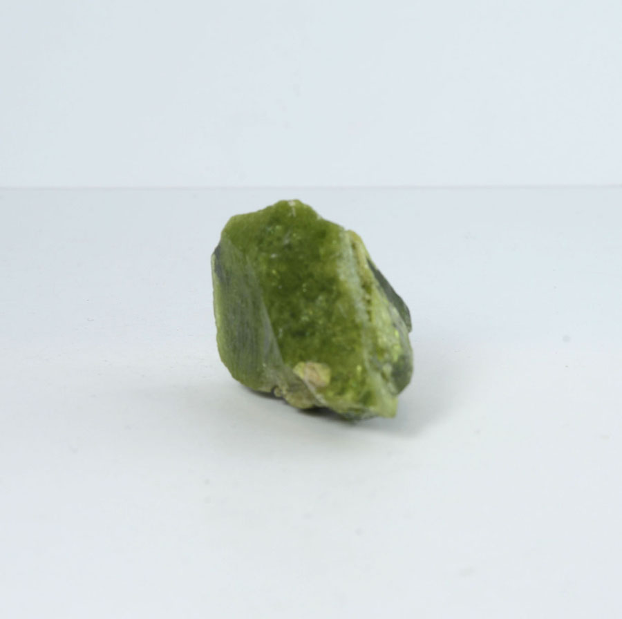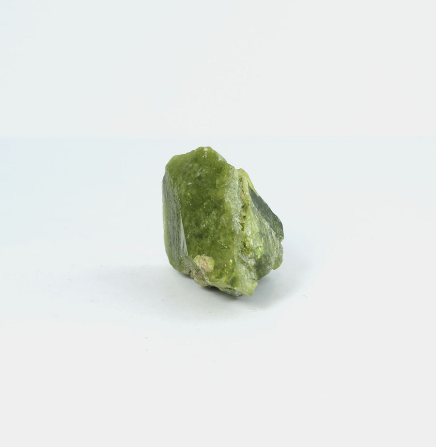 Mittelgroßer Titanit-Kristall mit leuchtend grüner Farbe. Der Titanit ist leicht durchscheinend. Dieser Titanit-Kristall ist ein Unikat.
