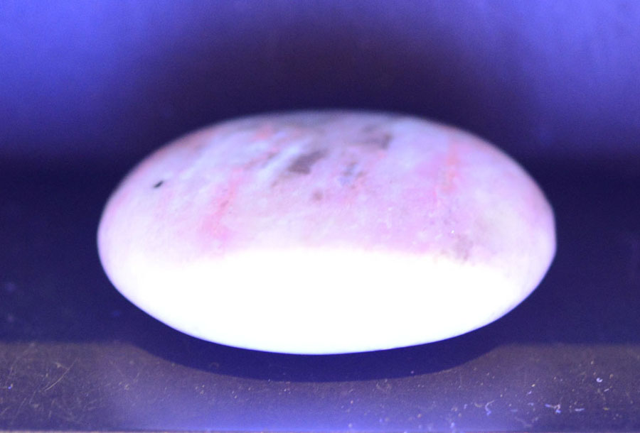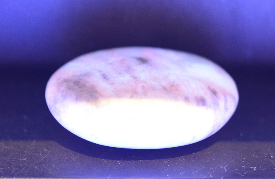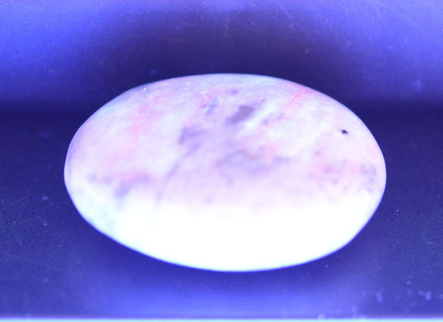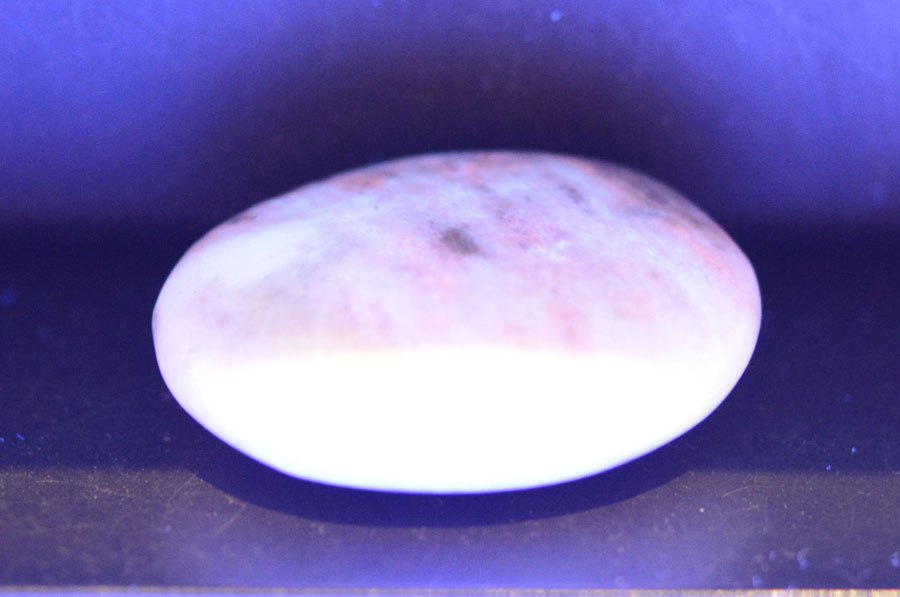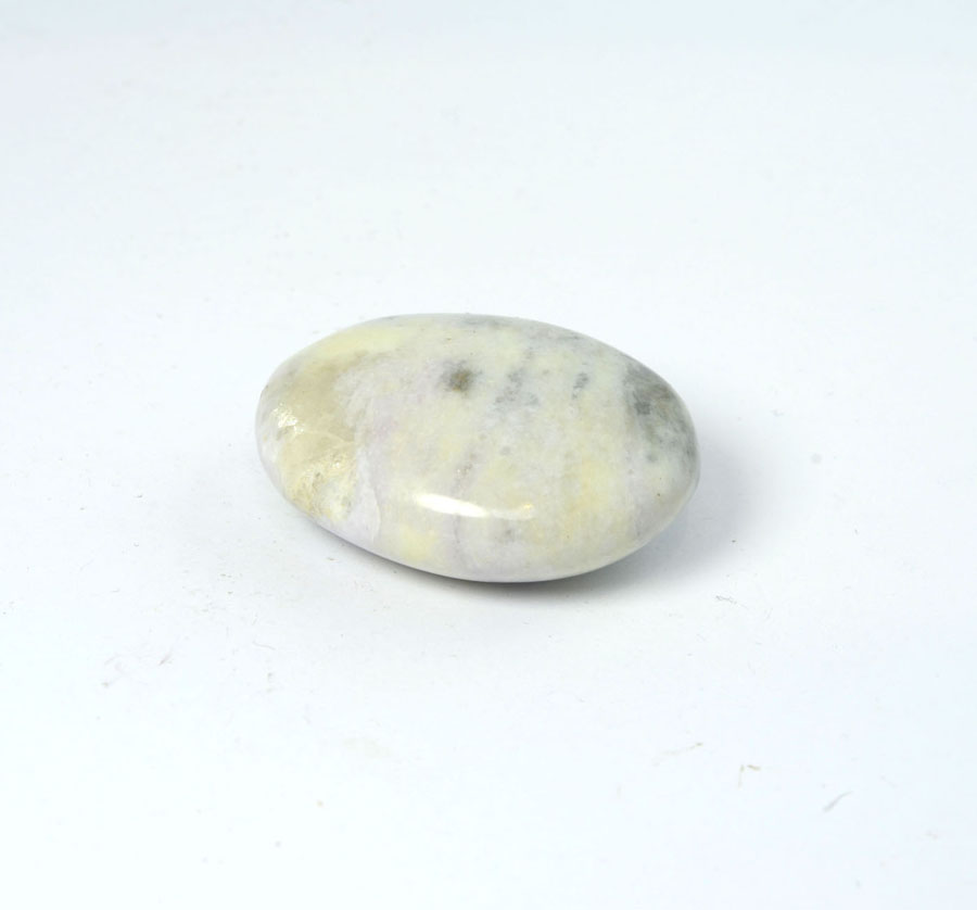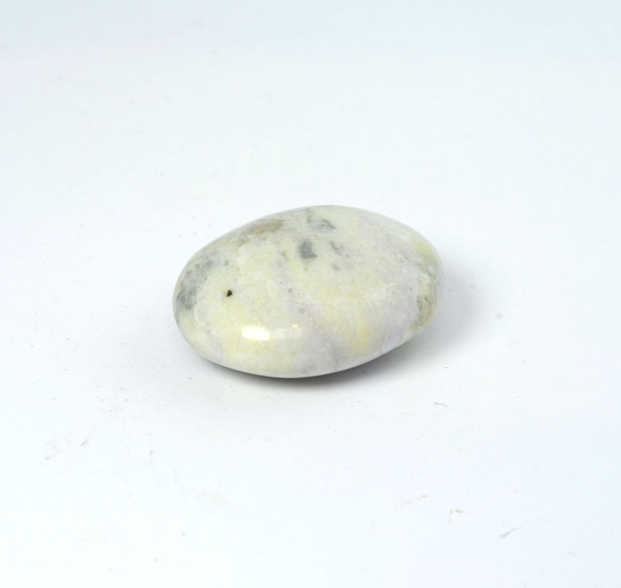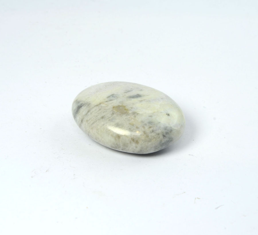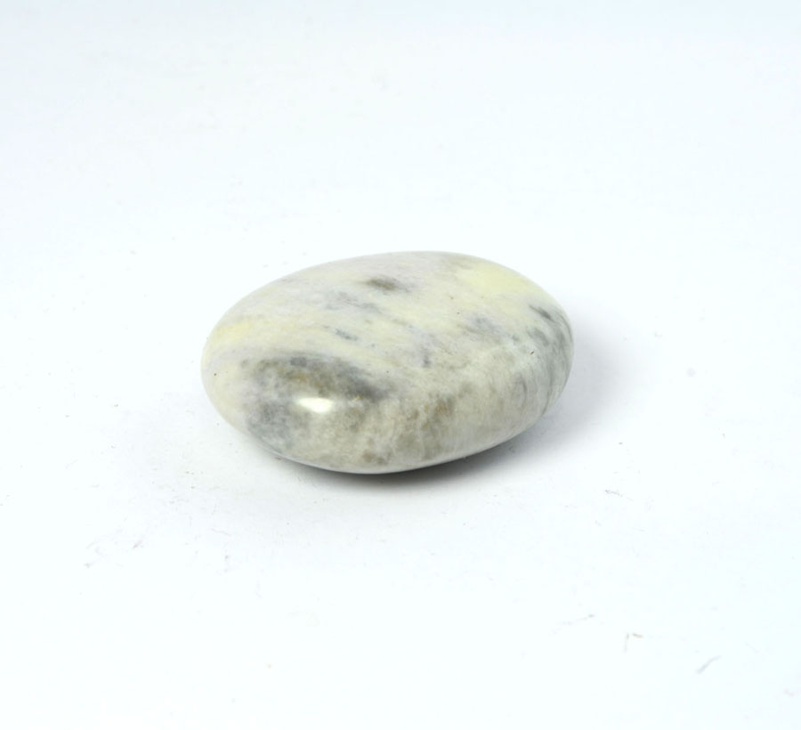 Flacher Handschmeichler aus pastellig grünem Hackmanit mit feiner Zeichnung. Dieser Hackmanit-Handschmeichler ist ein Unikat.