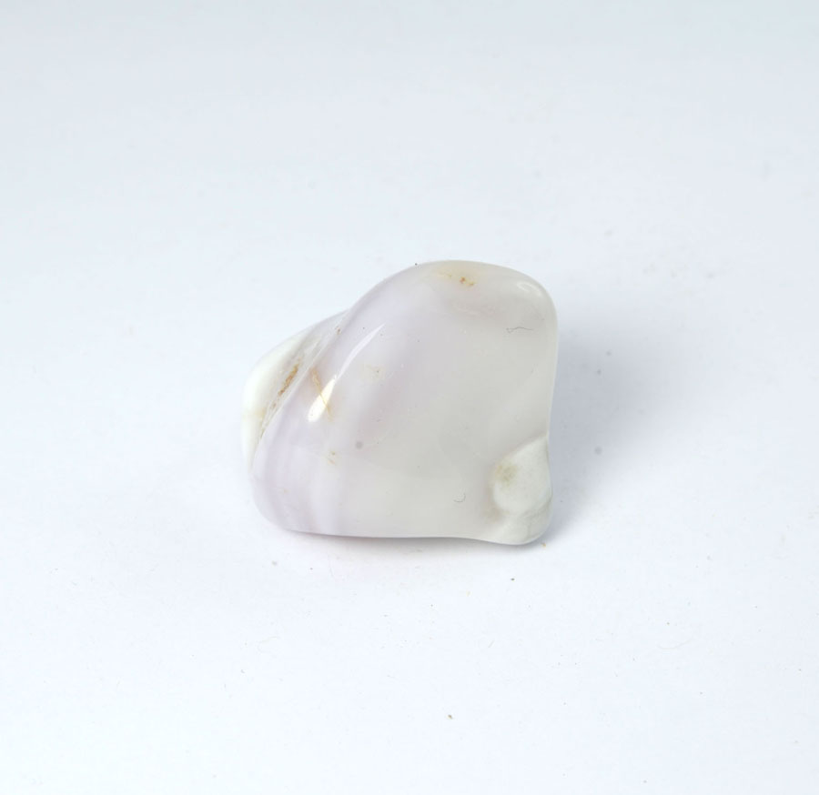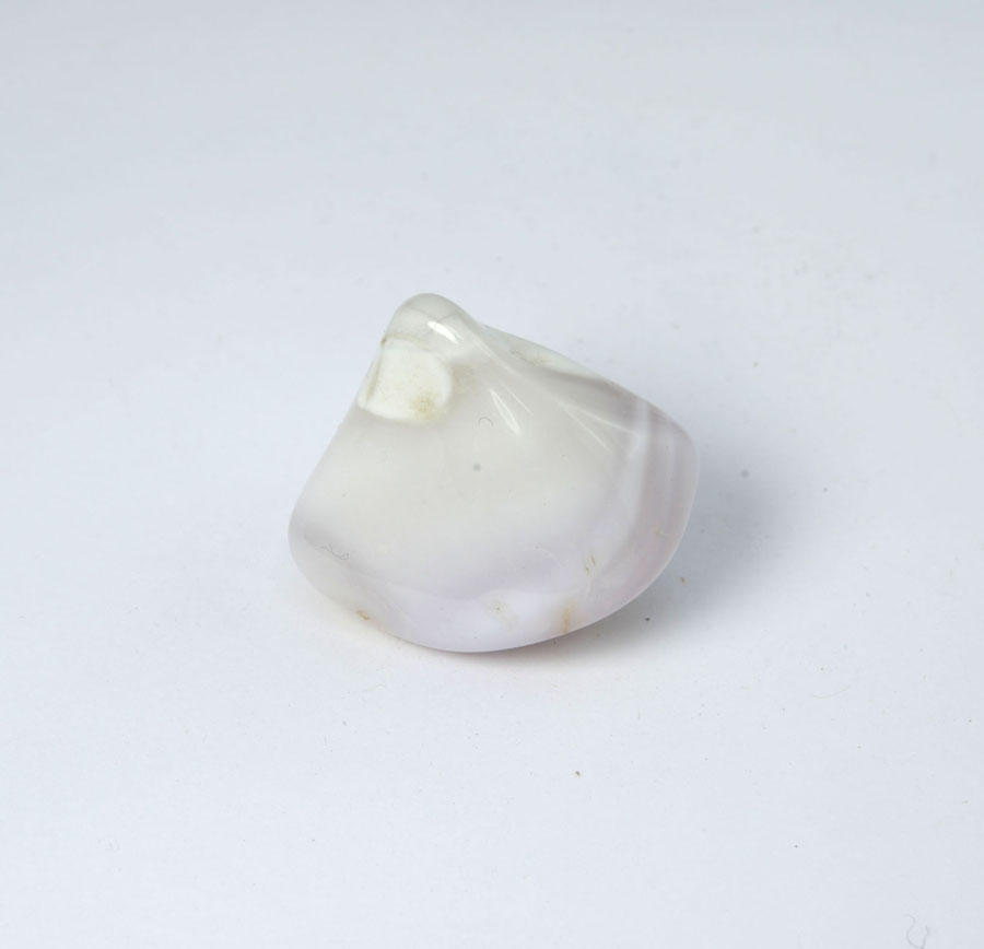 Zart rosa Chalcedon-Handschmeichler mit feiner, leicht wolkiger Zeichnung. Dieser Rosa-Chalcedon-Handschmeichler ist ein Unikat.