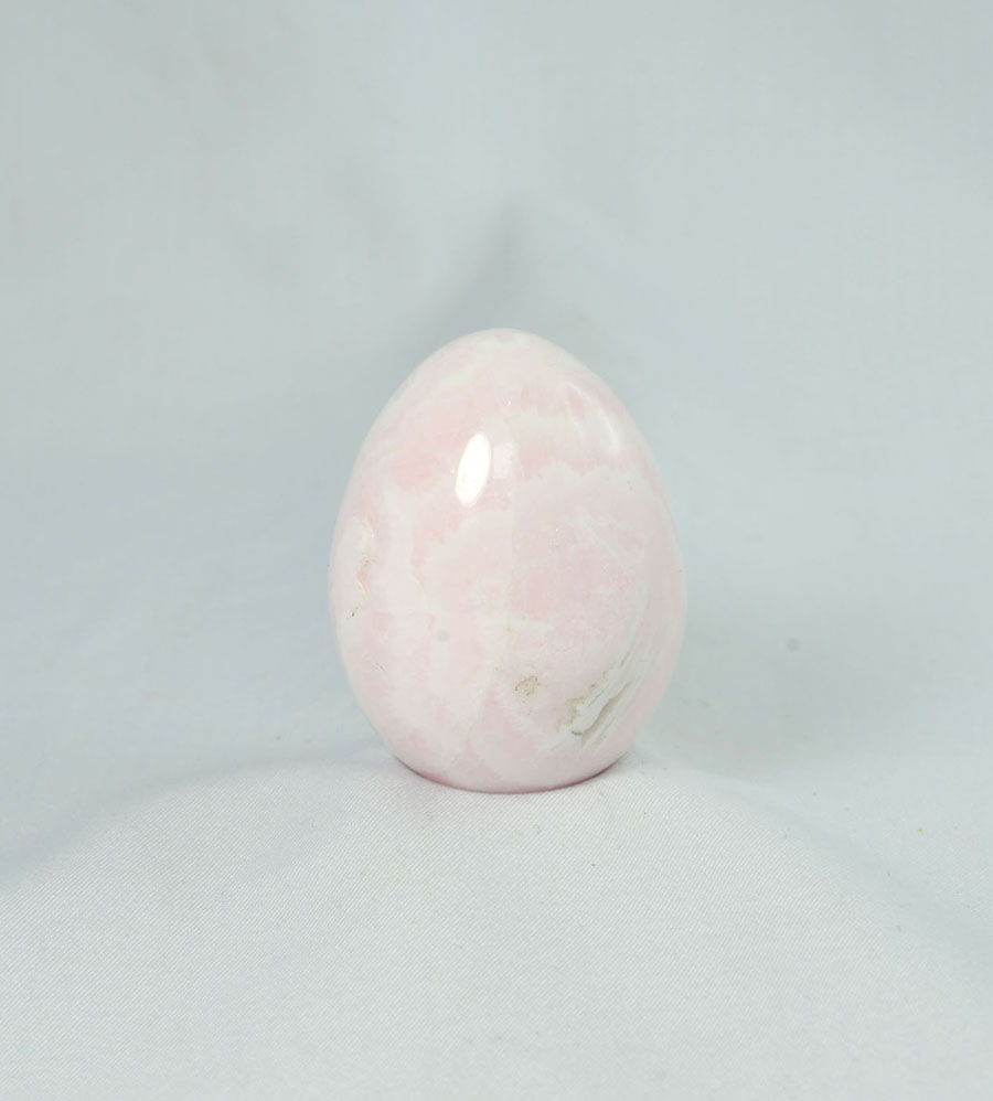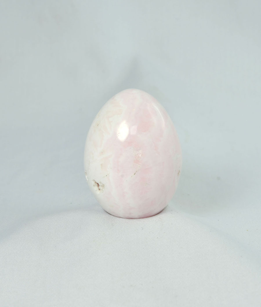 Seltenes, schön gebändertes Mangano-Calcit-Ei mit zartrosa Farbe. Das Ei gilt als uraltes Symbol für das lebensspendende Prinzip - Ideal für Sammler, als Deko oder für den zeremoniellen Gebrauch. Dieses Mangano-Calcit-Ei ist ein Unikat.
