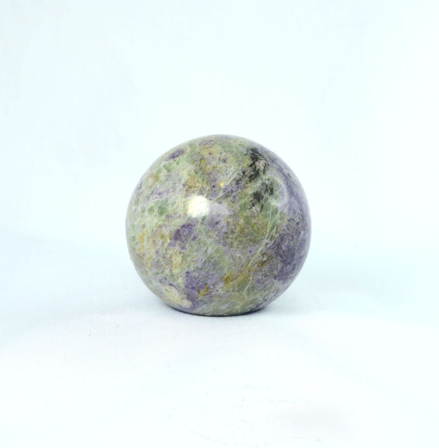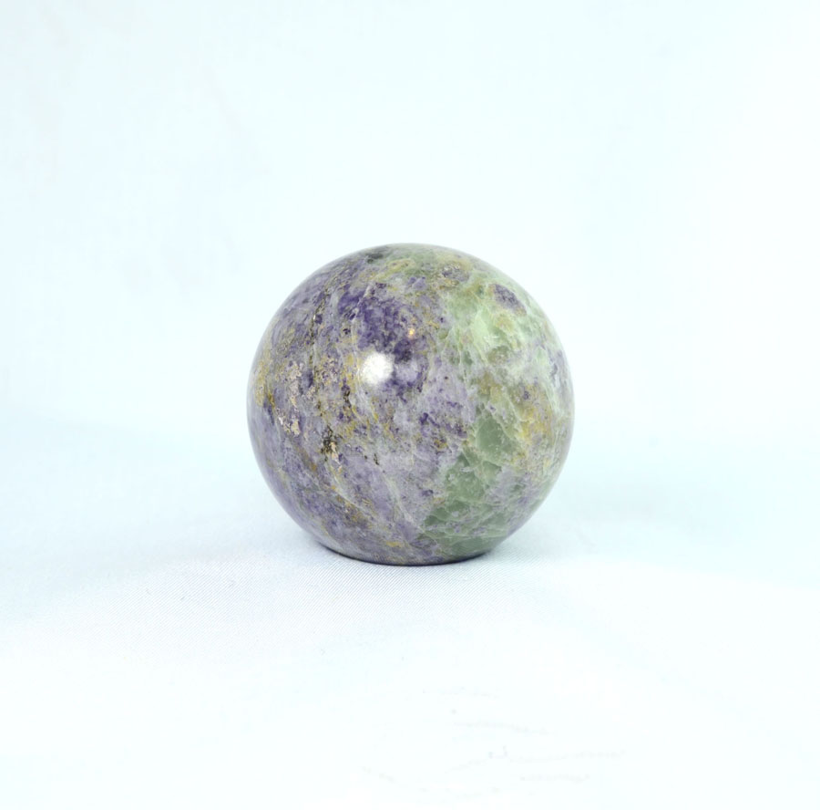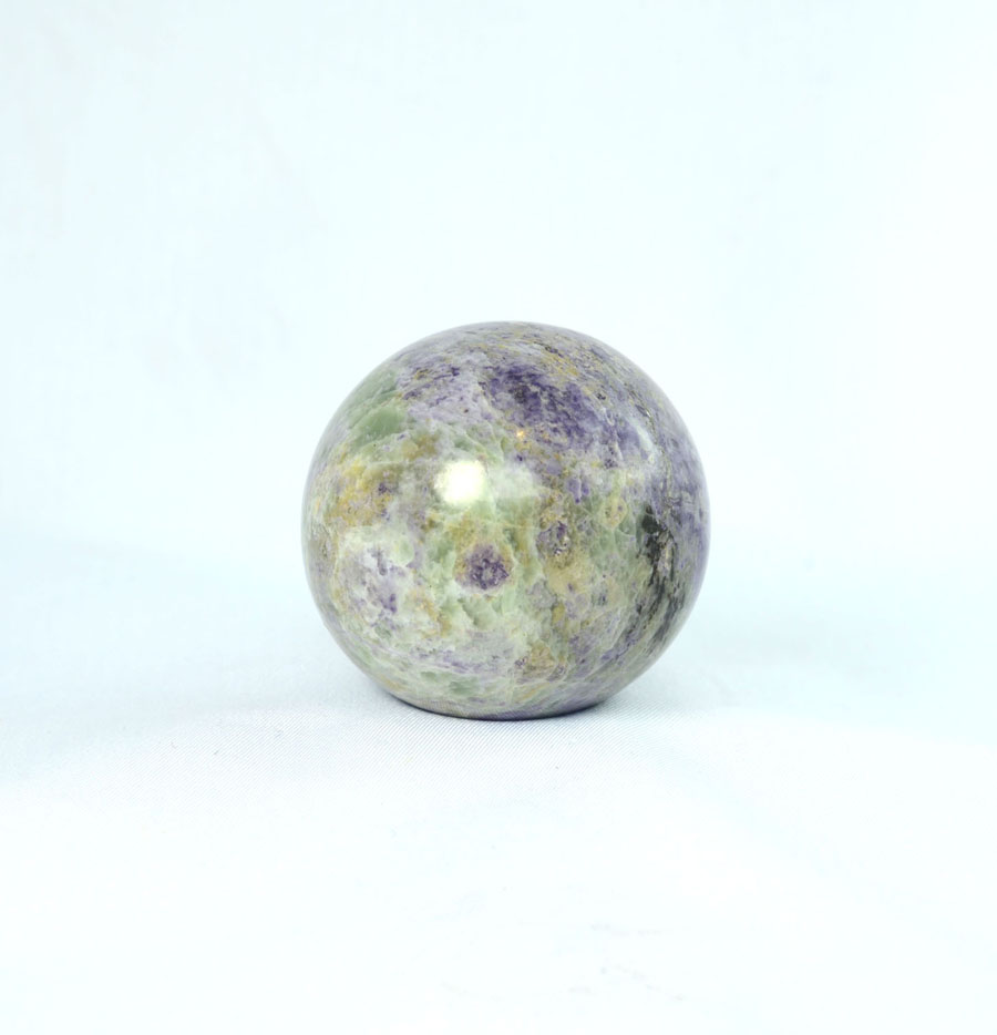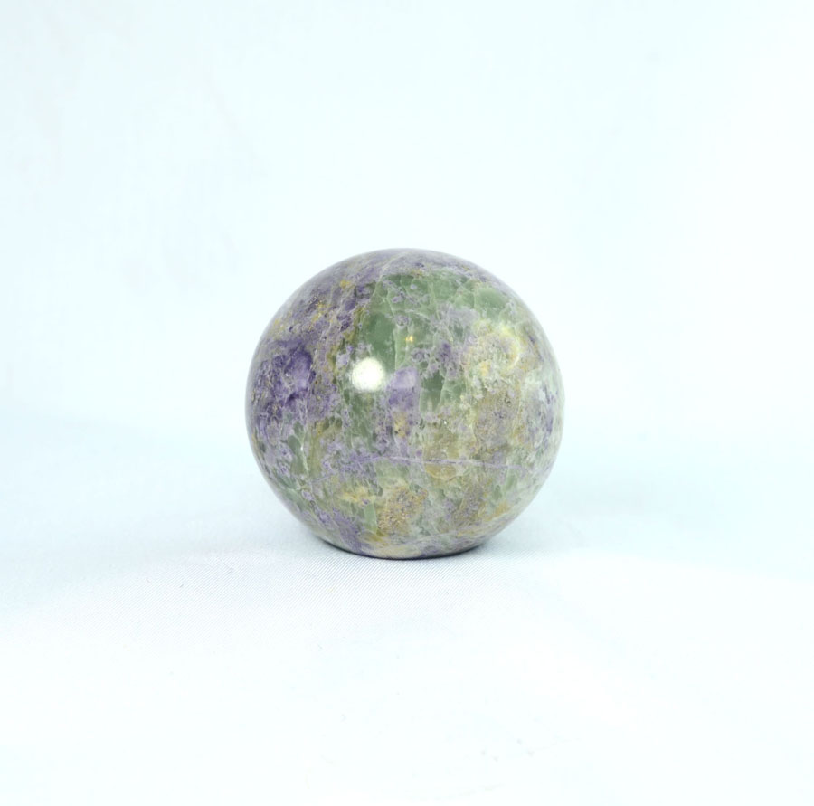 Farblich sehr reizvolle Kugel mit lebendiger Zeichnung aus den drei Mineralien Stichtit, Serpentin und Fluorit, die auch unter der Bezeichnung "Bolivianit" bekannt sind Diese Bolivianit-Kugel ist ein Unikat.
