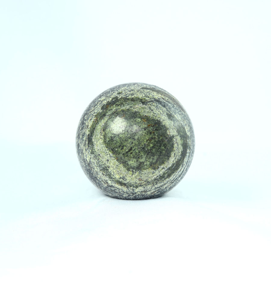 Kräftig grüne Kugel aus der Serpentin-Varietät Silberauge mit intensiver Zeichnung. Serpentin... mehr