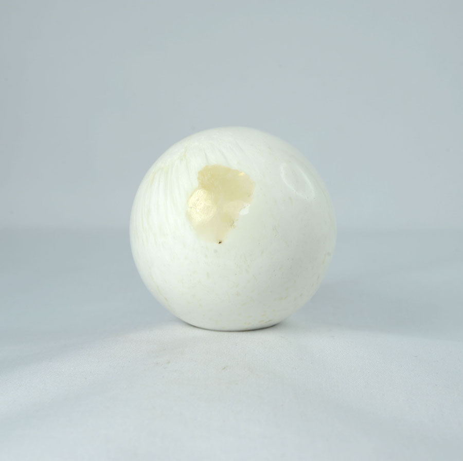 Mittelgroße, schneeweiße Skoleszit-Kugel mit schön sichtbarer, faseriger Struktur.