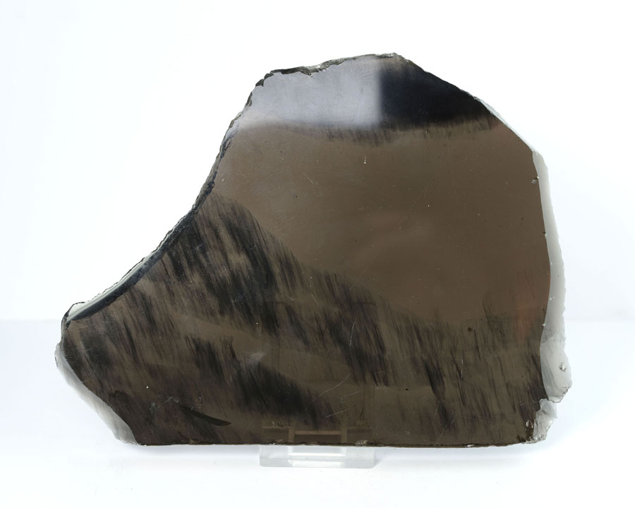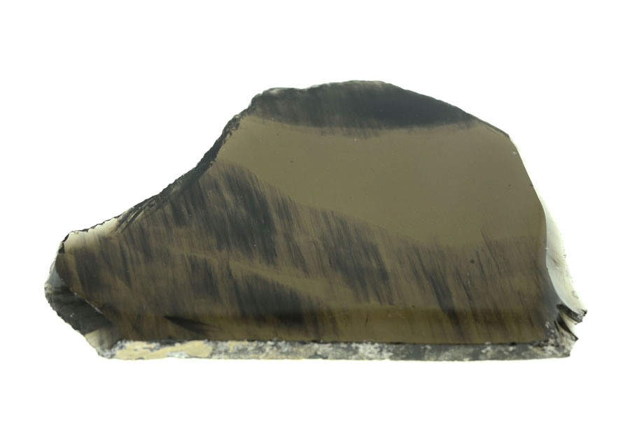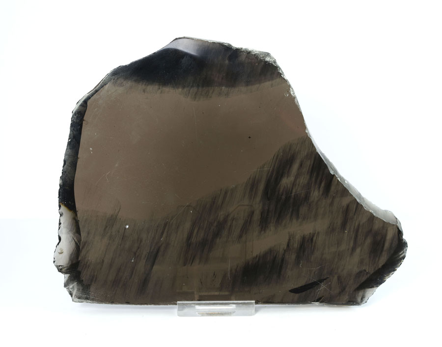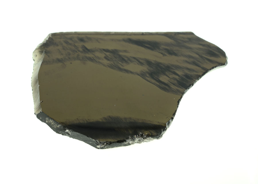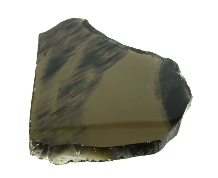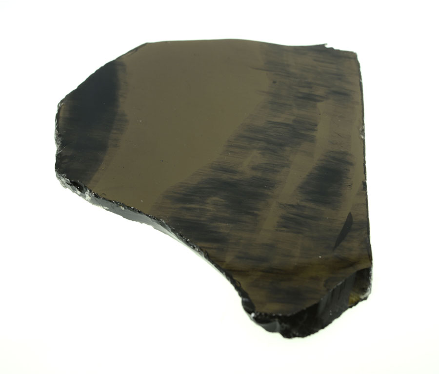 Einzigartige Lamellen-Obsidian-Scheibe mit größeren klaren Partien und abwechselnd kräftigen, dunklen Lagen. Diese Lamellen-Obsidian-Scheibe ist ein Unikat.