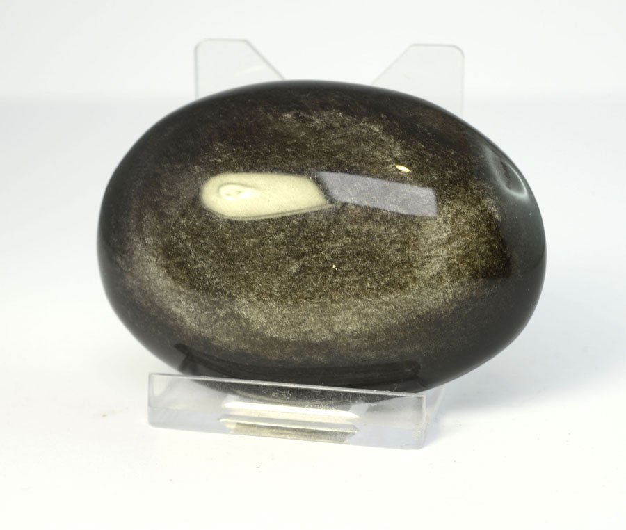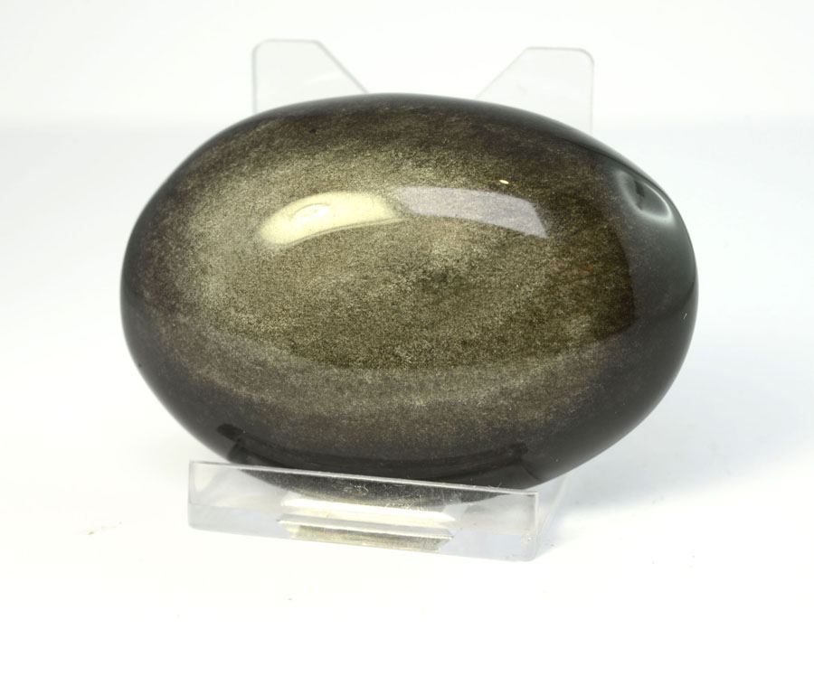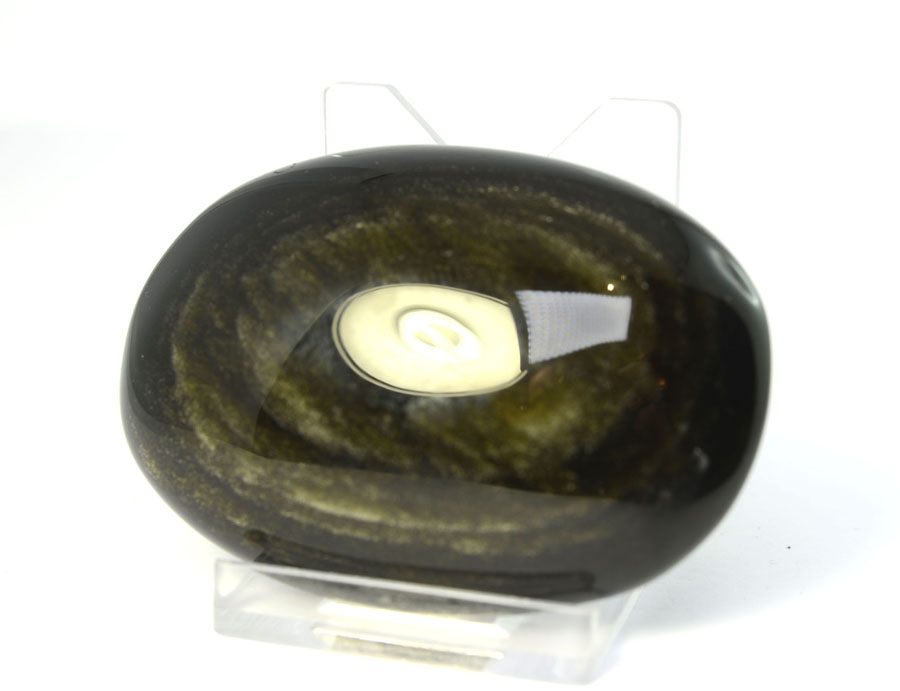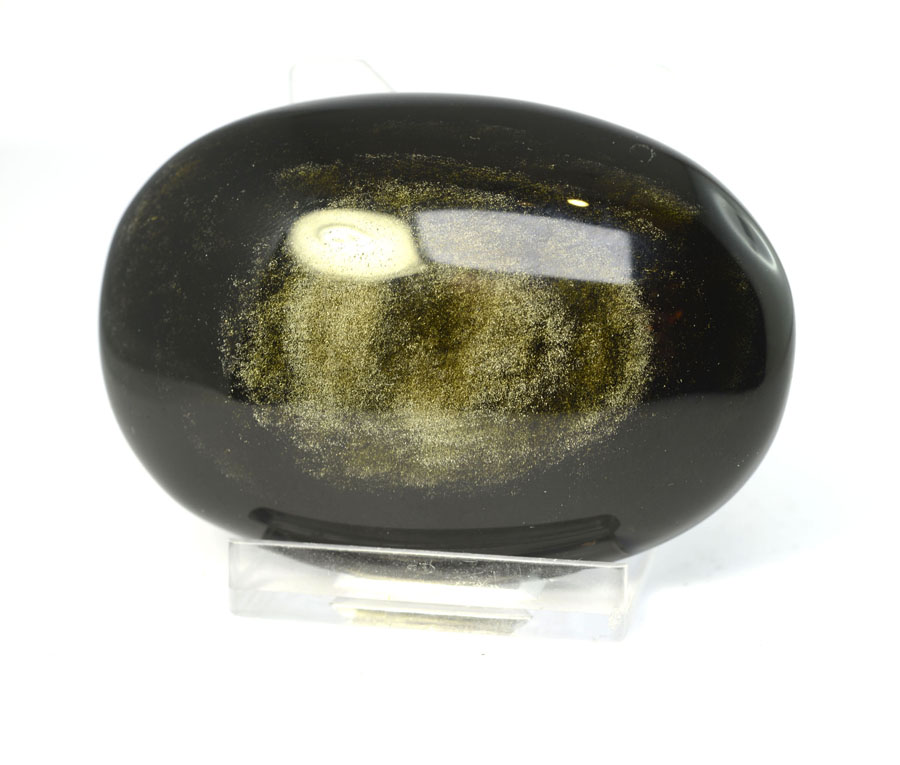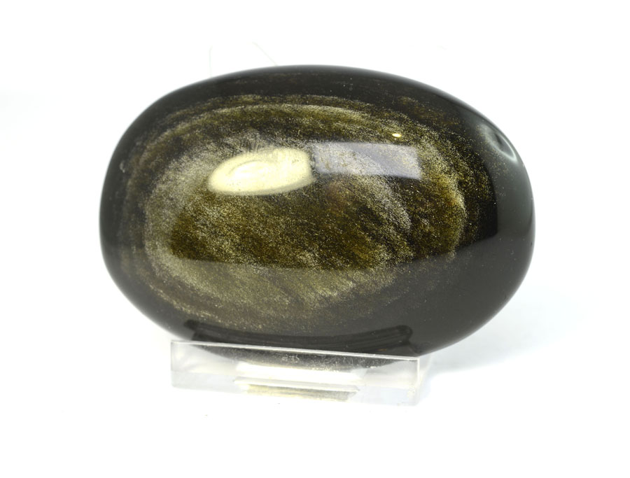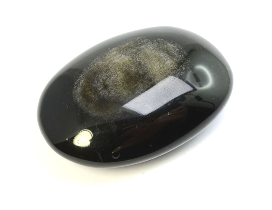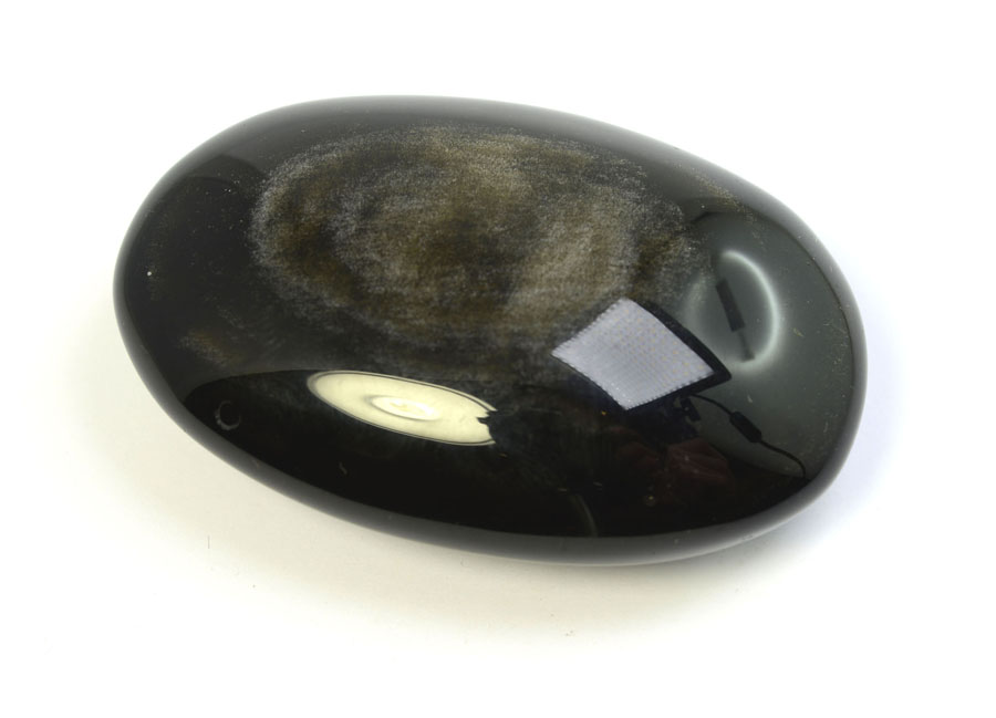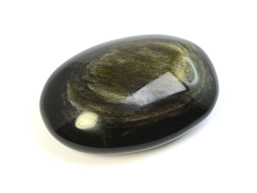 Obsidian ist ein amorphes, vulkanisches Glas. Durch feinst verteilte Gasbläschen entsteht durch Lichtbrechung der goldene Schimmer des Gold-Obsidians. Gold-Obsidian gilt als Stein für Auflösung von negativem Denken und Heilung.