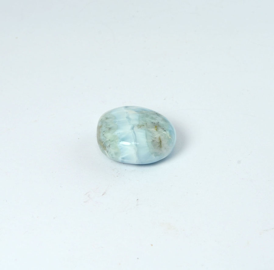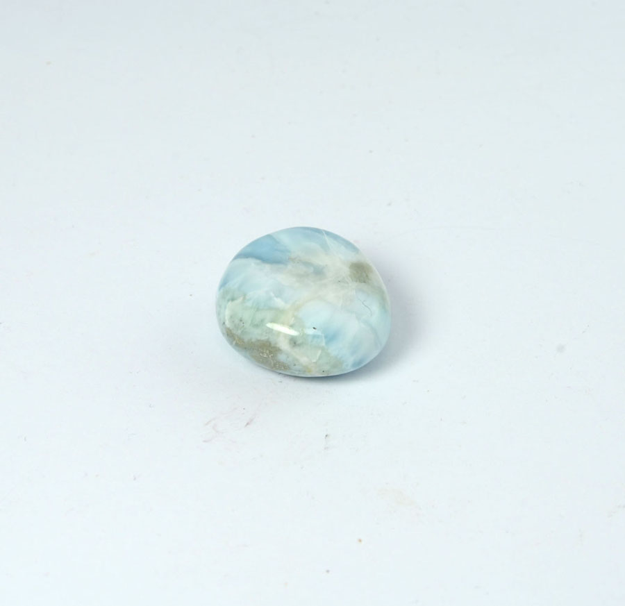 Kleiner Larimar-Handschmeichler mit feiner, wolkiger Zeichnung und leuchtend blauer Farbe.... mehr