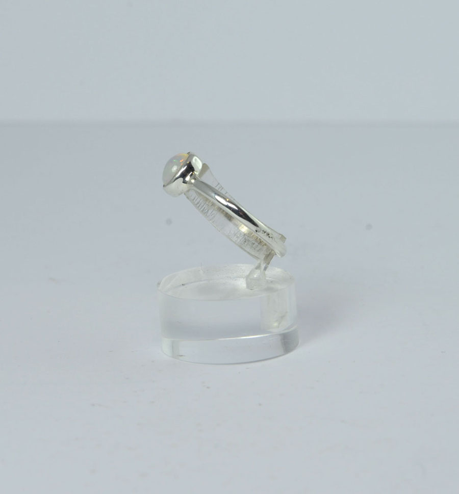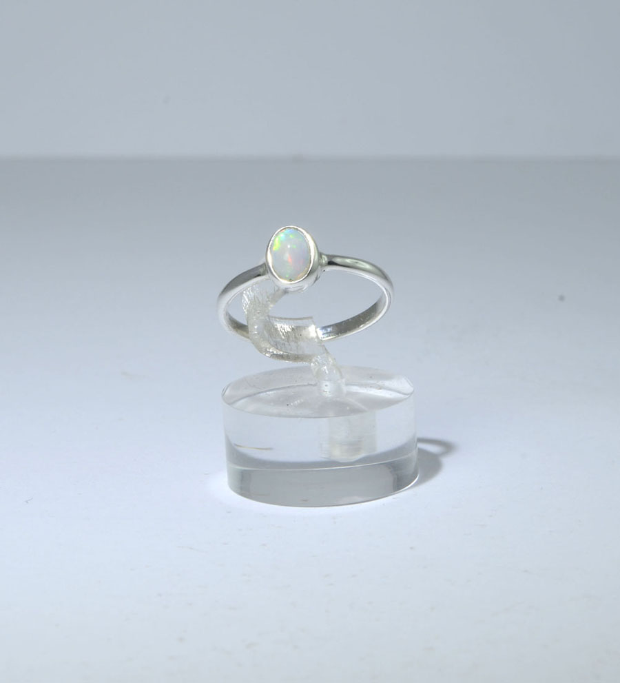 Zierlicher Ring mit einem ovalen Edelopal. als Cabochon. Der Opal hat ein feines, buntes Farbspiel und ist in Sterling Silber gefasst. Dieser Edelopal-Ring ist ein Unikat.