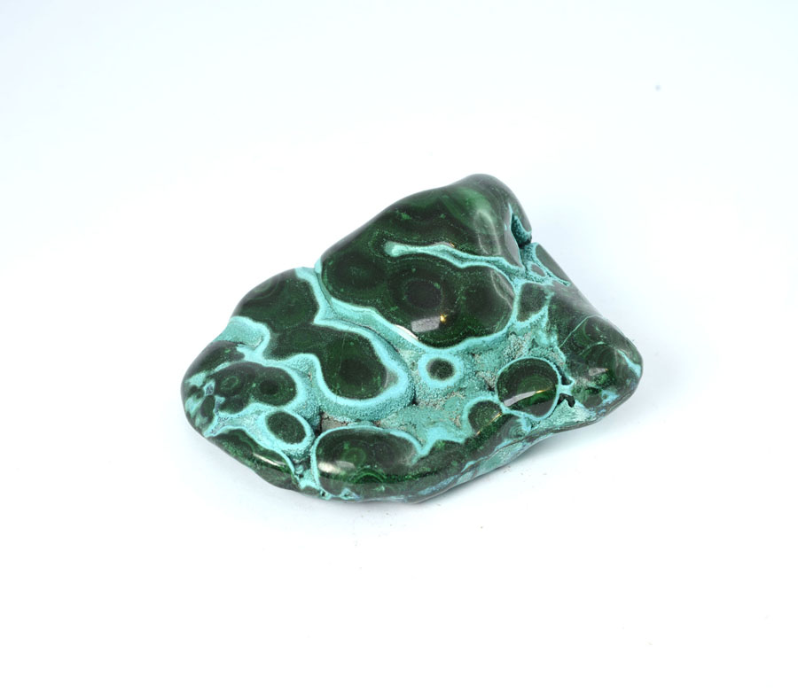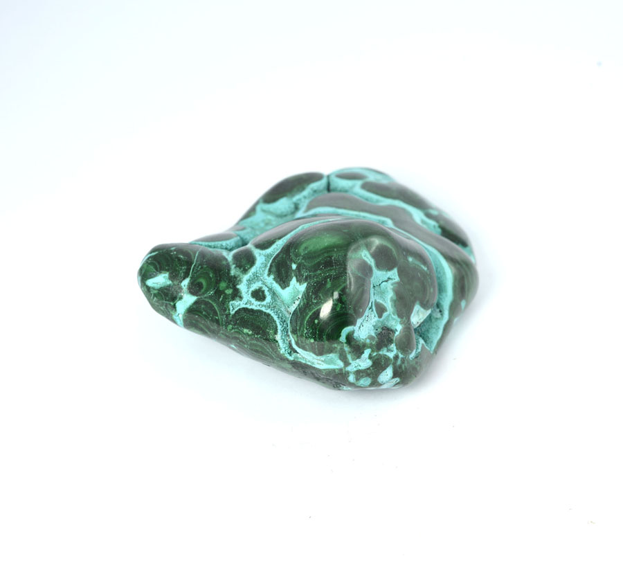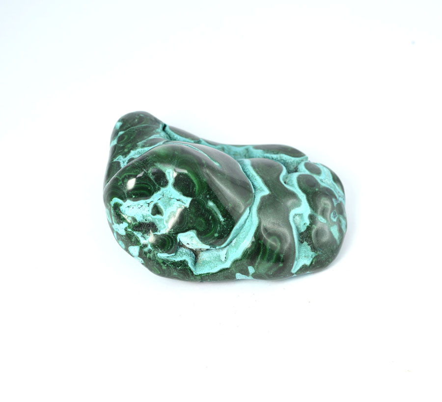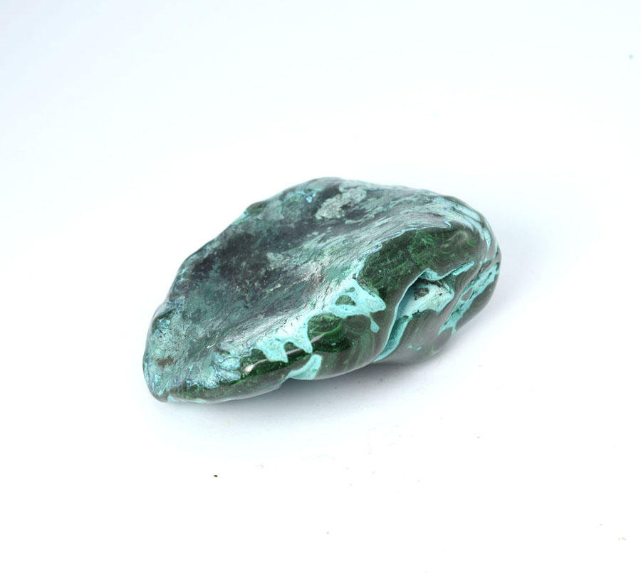Mittelgroßer Chrysokoll-Malachit-Handschmeichler, sehr reizvoll mit kräftiger, türkis-blauer Farbe und lebendiger Zeichnung. Dieser Chrysokoll-Malachit-Handschmeichler ist ein Unikat.