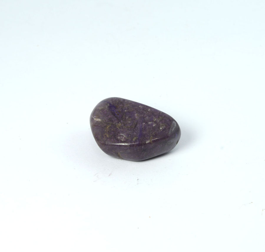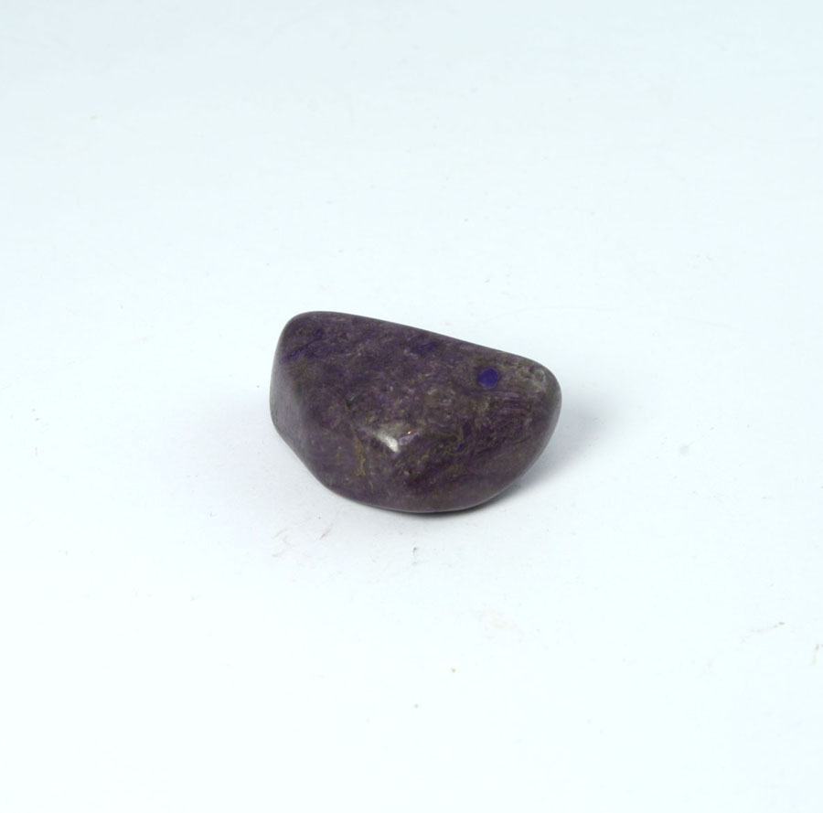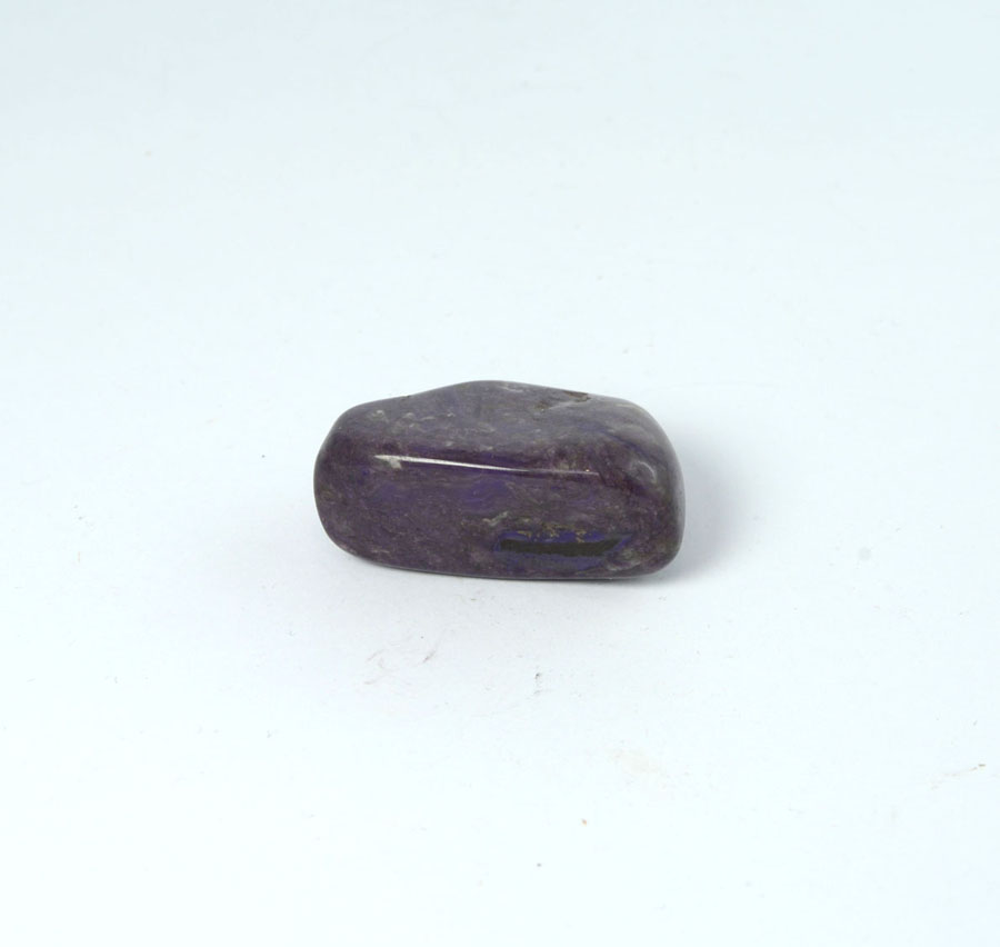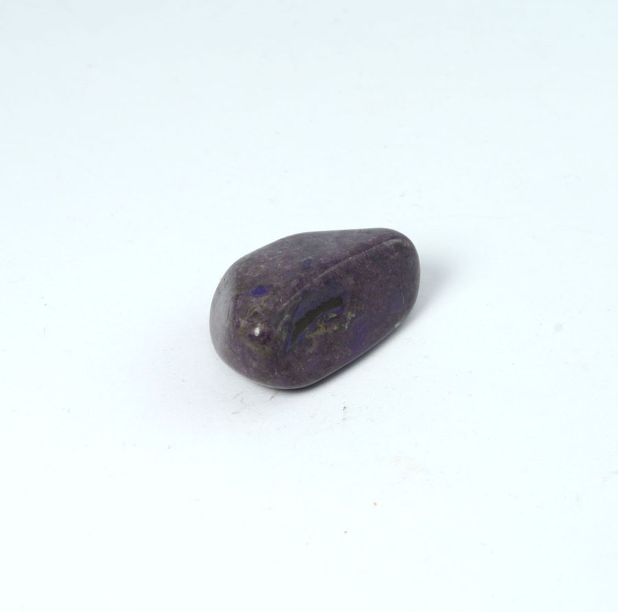 Kleiner Sugilith Handschmeichler mit dunkel violetter Farbe und lebendiger Zeichnung. Dieser Sugilith-Handschmeichler ist ein Unikat.