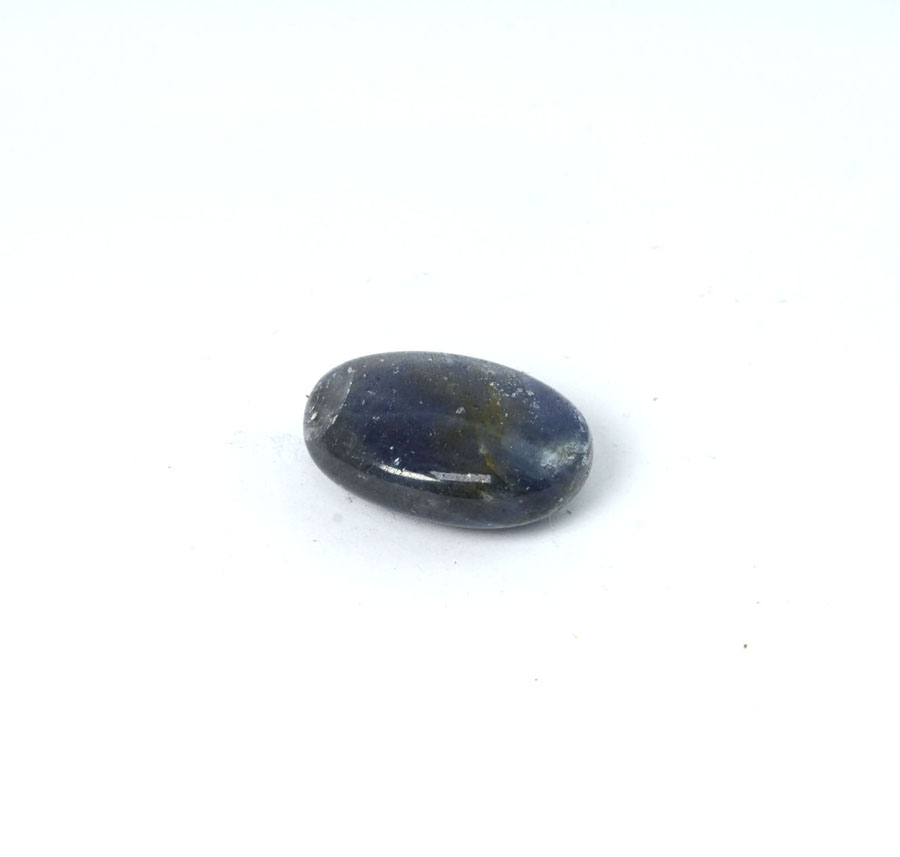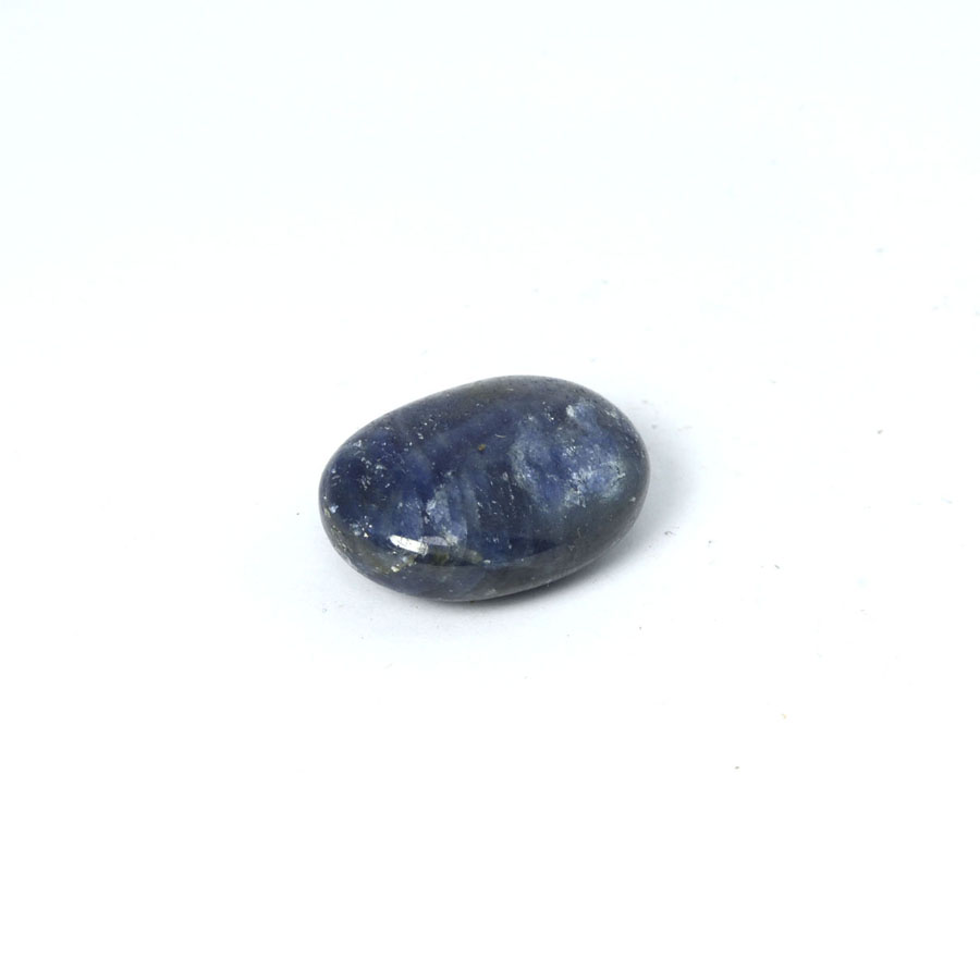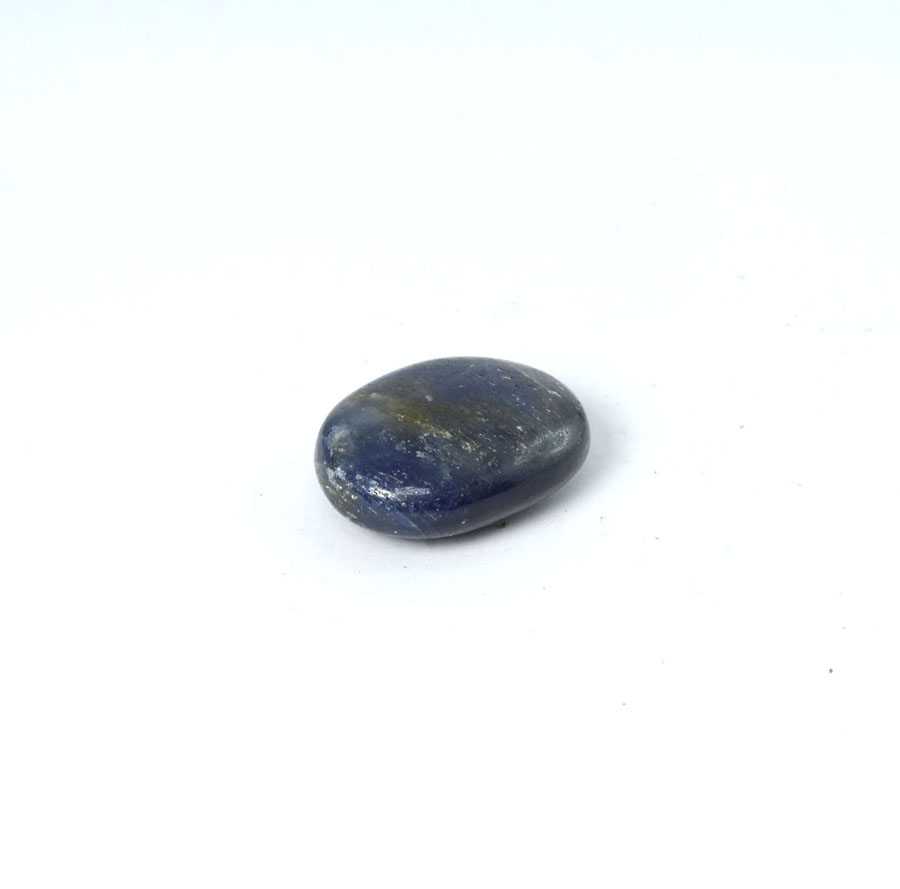 Kleiner, flacher Saphir-Handschmeichler mit leuchtend blauer Farbe. Dieser Saphir-Handschmeichler ist ein Unikat.