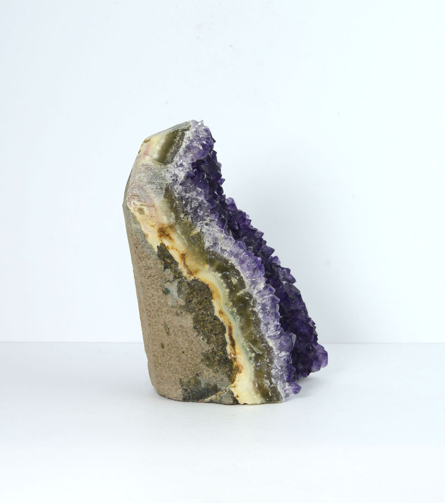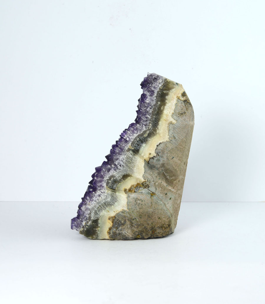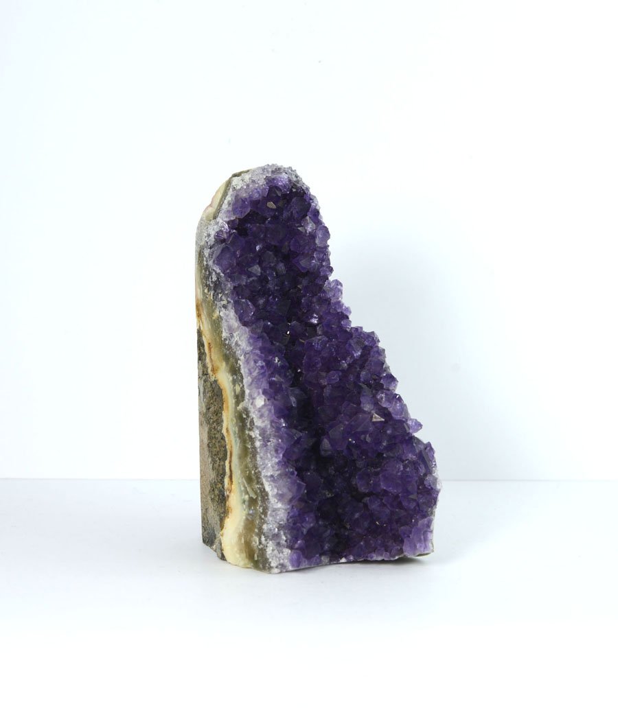 Amethystdrusen-Stück mit gesägter Standfläche. Die Stufe hat intensiv violette Kristalle mit schönen Glanz. Diese Amethyst-Stufe ist ein Unikat.