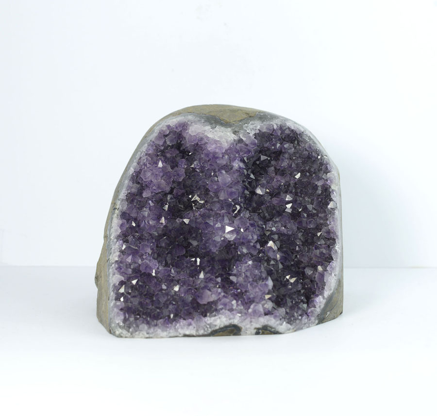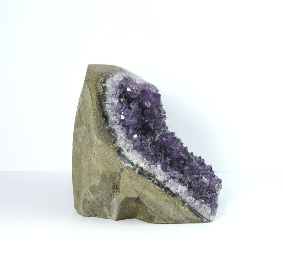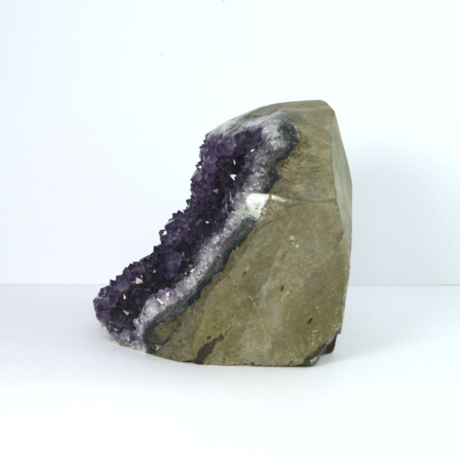Amethystdrusen-Stück in schöner Qualität mit gesägter Standfläche. Die Stufe hat leuchtend violette Kristalle mit schönen Glasglanz. Diese Amethyst-Stufe ist ein Unikat.