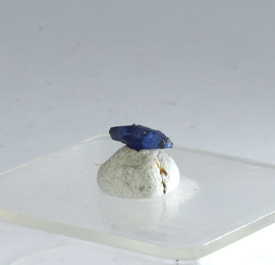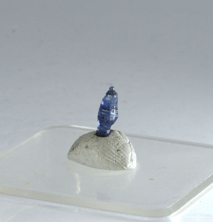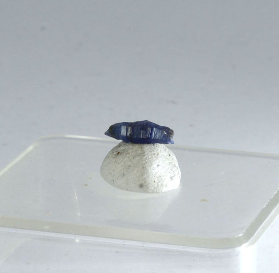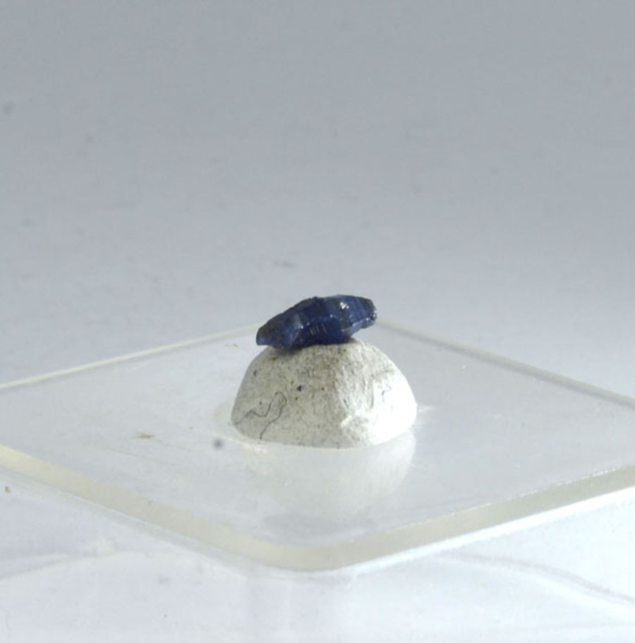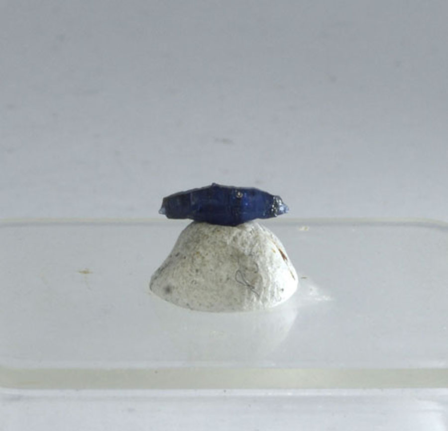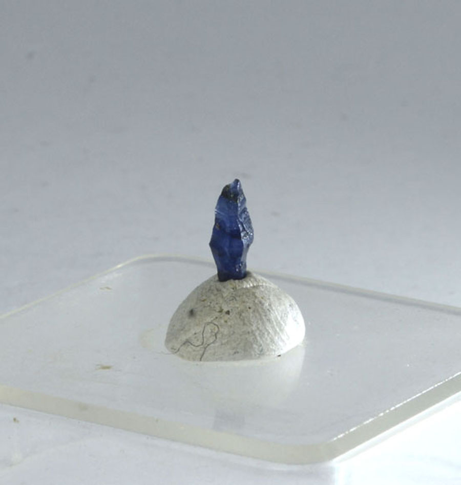 Zierlicher, leuchtend blauer Saphir-Kristall mit interessanter Struktur. Dieser Saphir-Kristall ist ein Unikat.