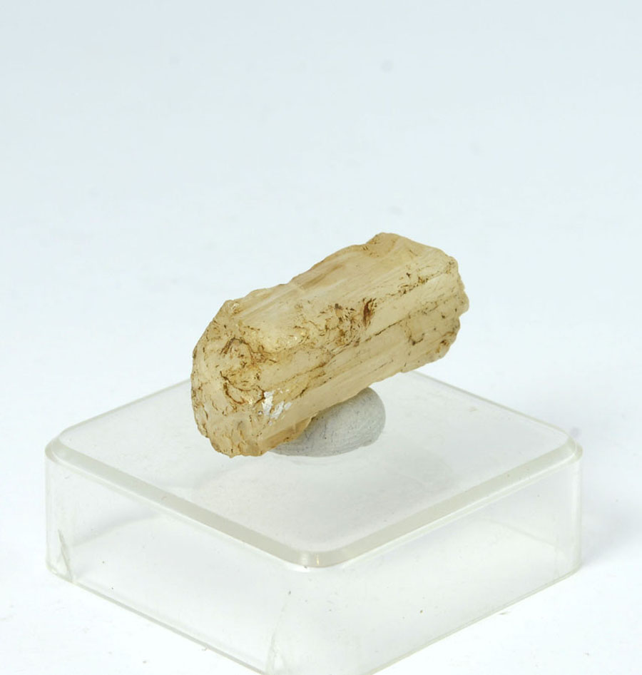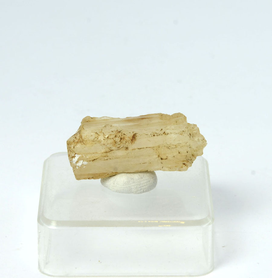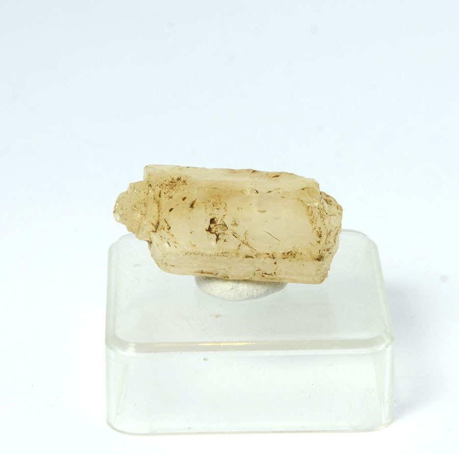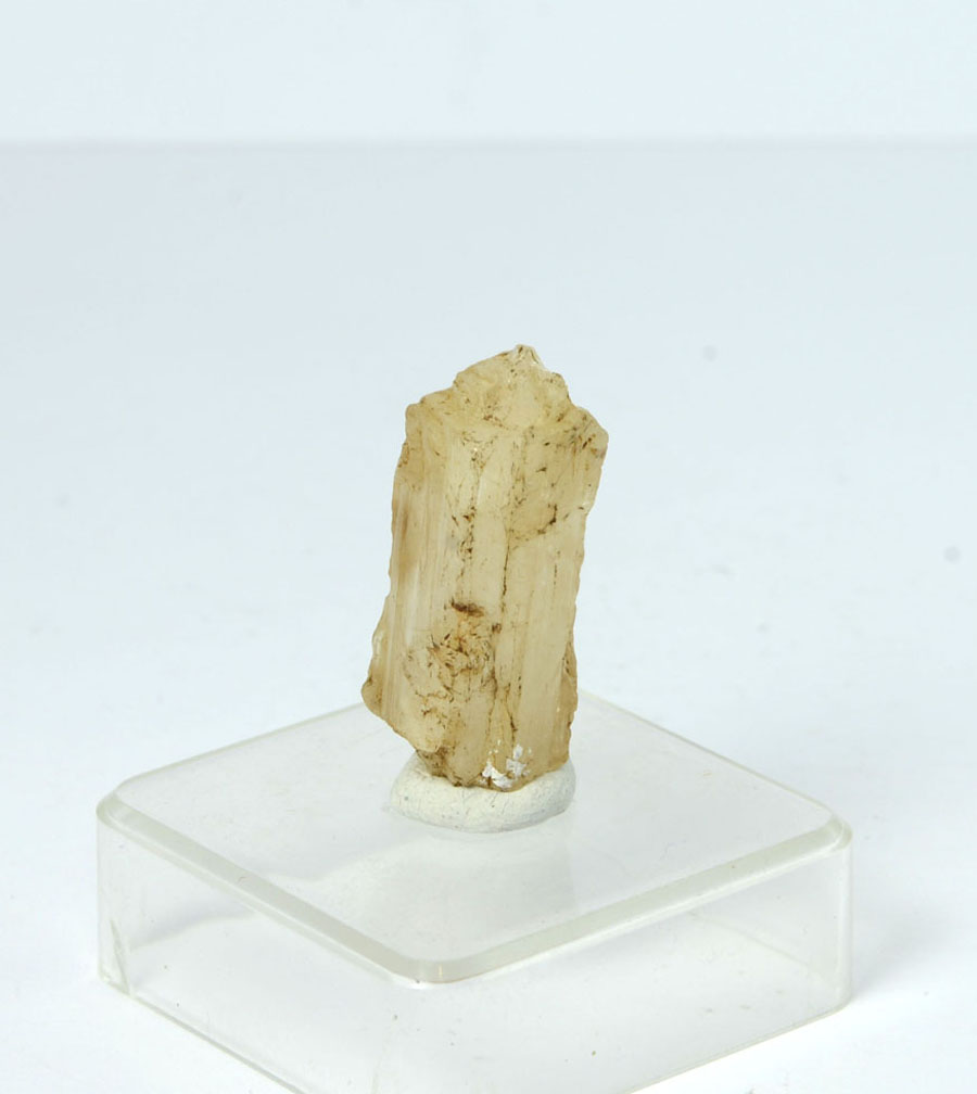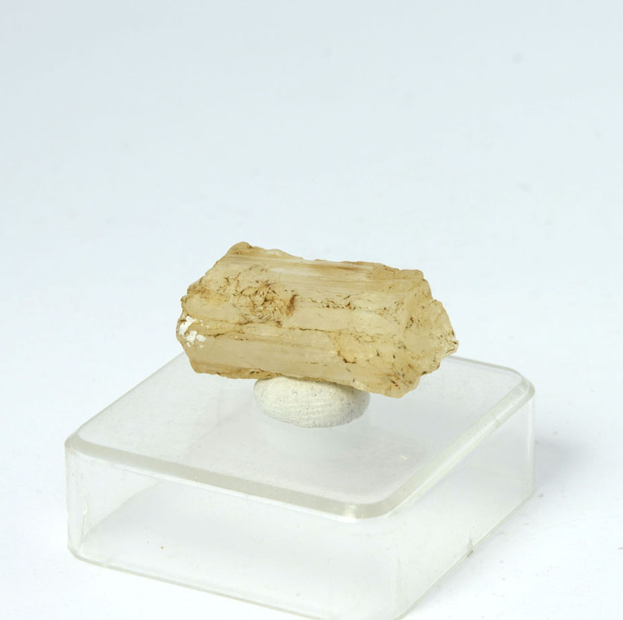Zart gelber, durchscheinender Phenakit-Kristall mit sauberen Kristallflächen und stufiger Endfläche. Dieser Phenakit-Kristall ist ein Unikat.