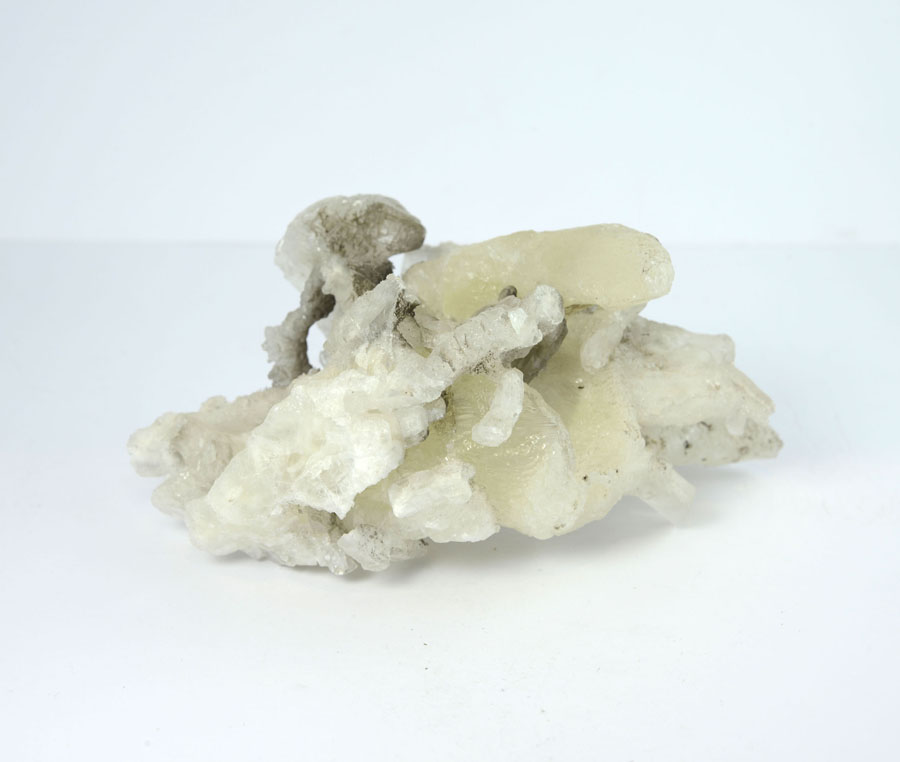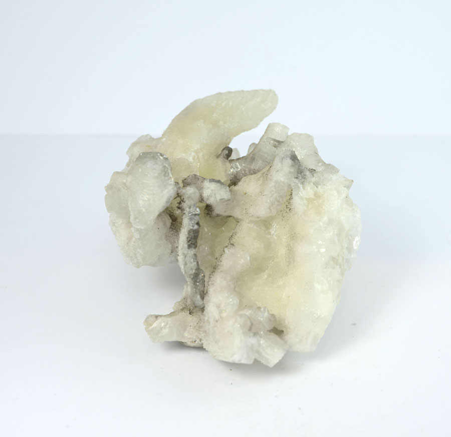 Schön gewachsene Aragonit-Stufe mit teils großen, teils sehr feinen, weißen Kristallen. Diese Aragonit-Stufe ist ein Unikat.