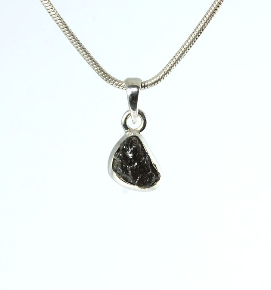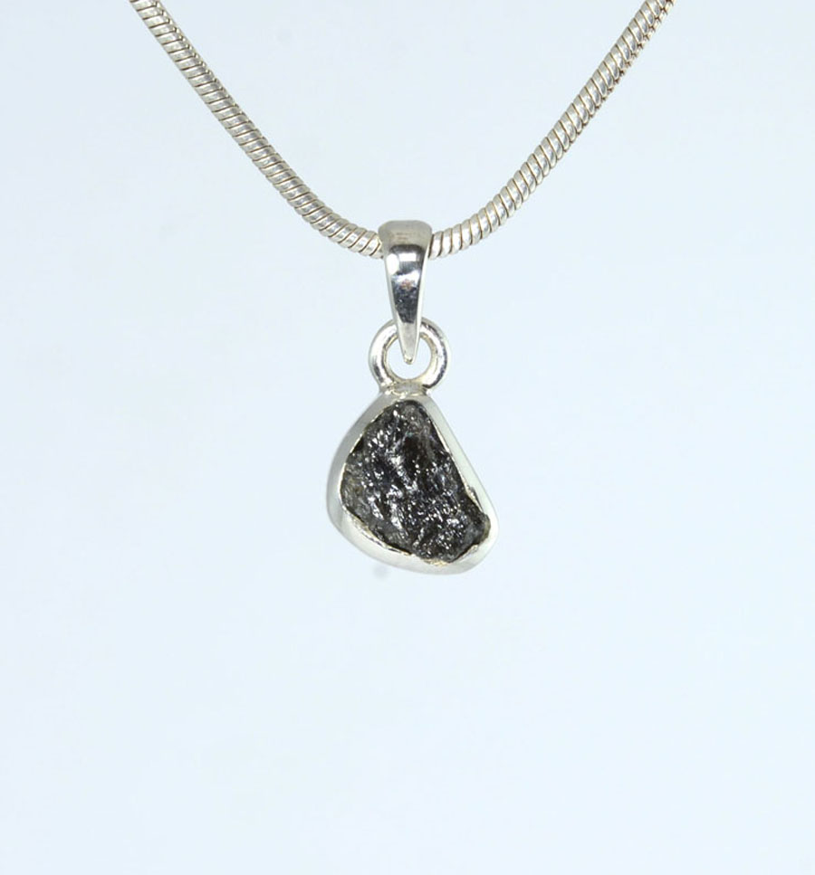 Ausgefallener Diamant-Anhänger mit anthrazitfarbenem Rohstein mit seidigem Schimmer, gefasst in Sterling Silber. Dieser Diamant-Anhänger ist ein Unikat.