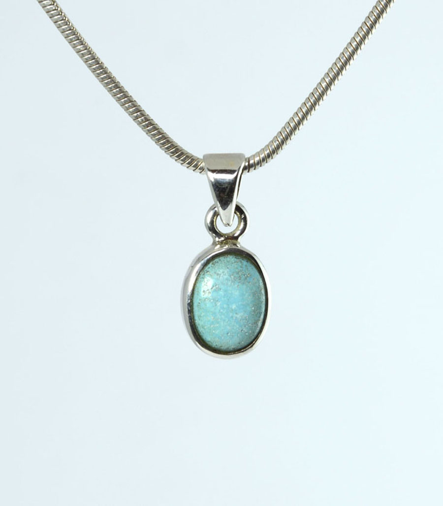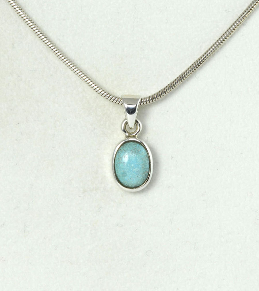 Zierlicher, leuchtend blauer Türkis-Anhänger aus der Sleeping Beauty Mine mit ovalem Cabochon, eingefasst in Sterling Silber. Dieser Türkis-Anhänger ist ein Unikat.
