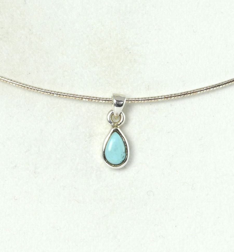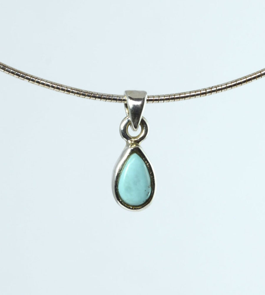 Zierlicher, himmelblauer Türkis-Anhänger aus der Sleeping Beauty Mine mit einem tropfenförmigen Cabochon, eingefasst in Sterling Silber. Dieser Türkis-Anhänger ist ein Unikat.