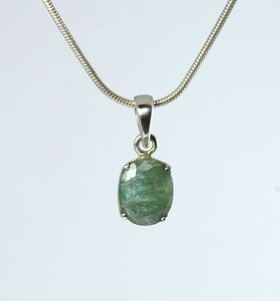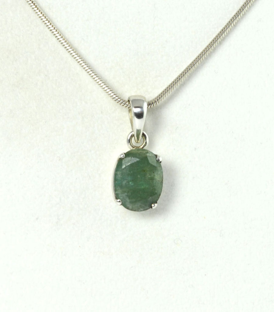 Feiner Smaragd-Anhänger mit dunkelgrünem Stein. Der oval geschliffene, facettierte Smaragd ist mit Krappen in Sterling Silber gefasst. Dieser Smaragd-Anhänger ist ein Unikat.