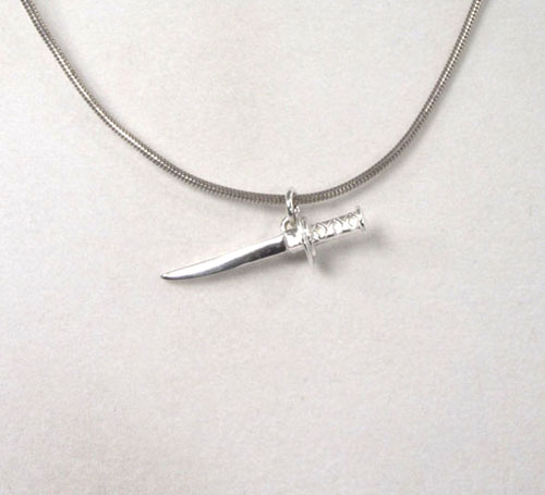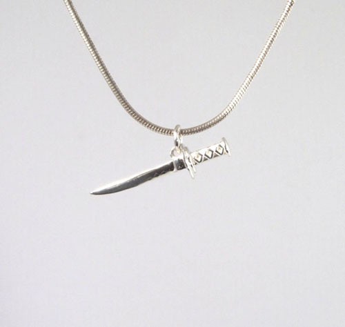 Zierlicher Anhänger als Katana Schwert aus Sterling-Silber.