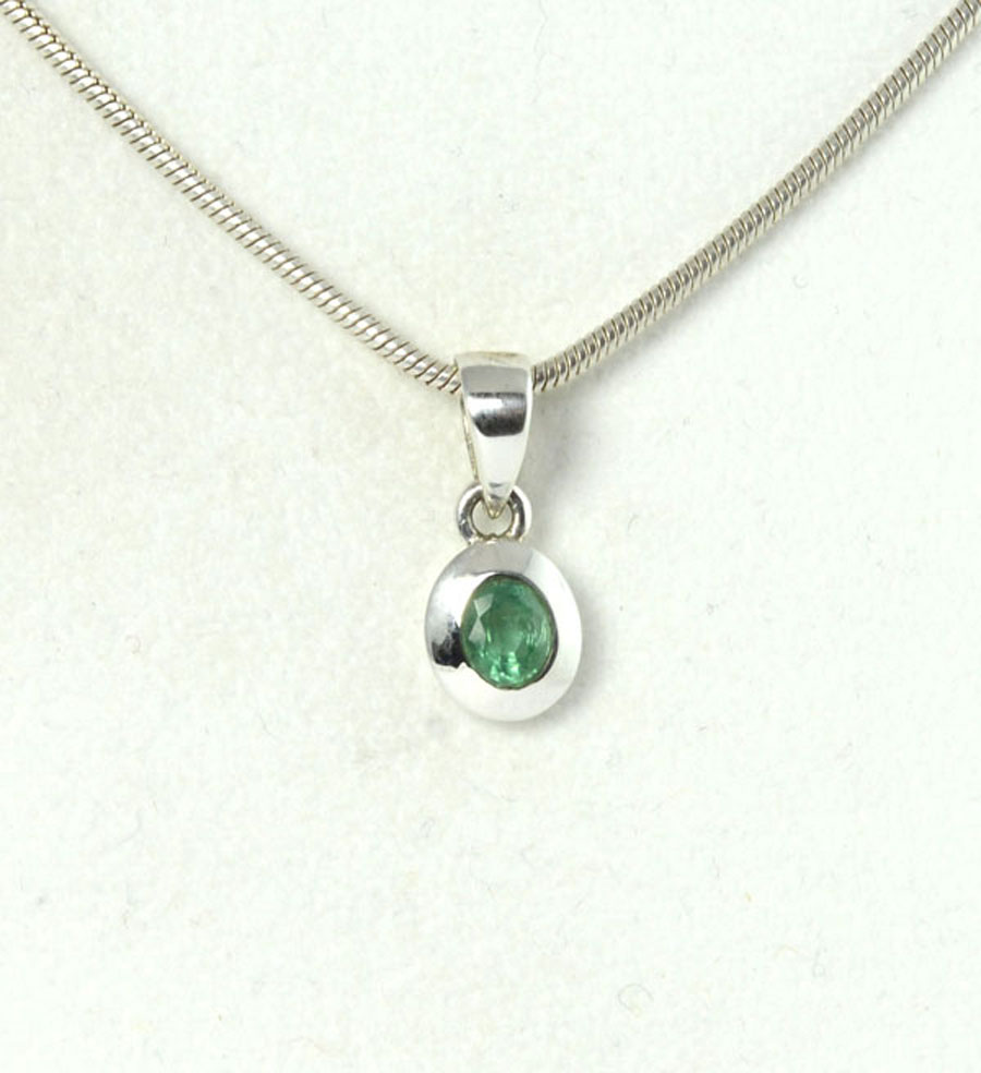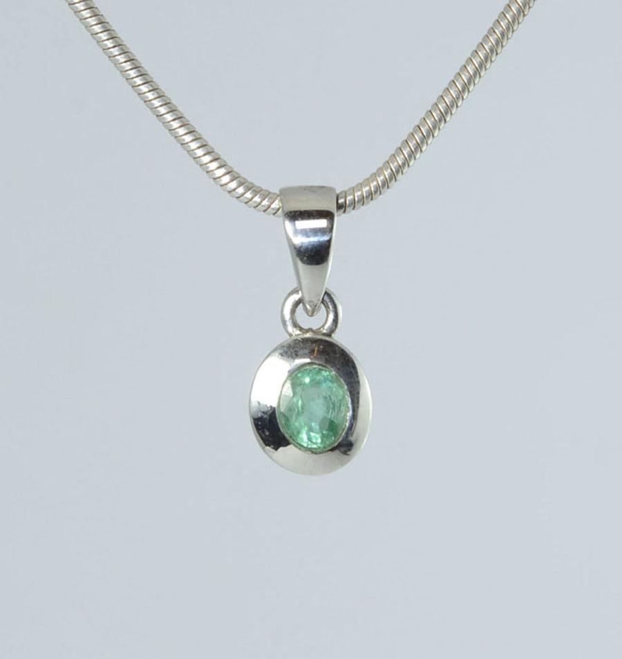 Edler Smaragd-Anhänger mit einem leuchtend grünen, ovalen und facettierten Smaragd. Der Smaragd ist mit kräftigem Rand in Sterling Silber gefasst. Dieser Smaragd-Anhänger ist ein Unikat.