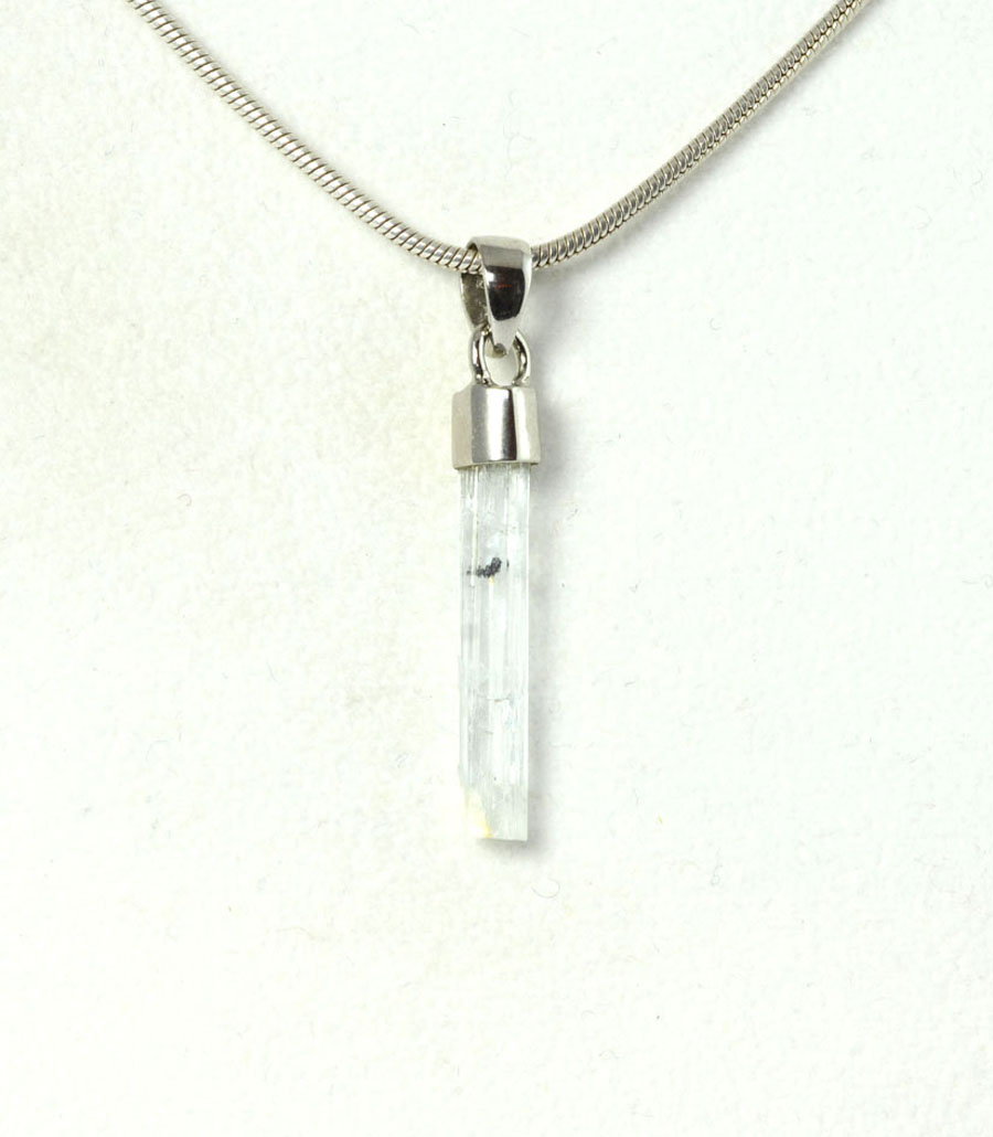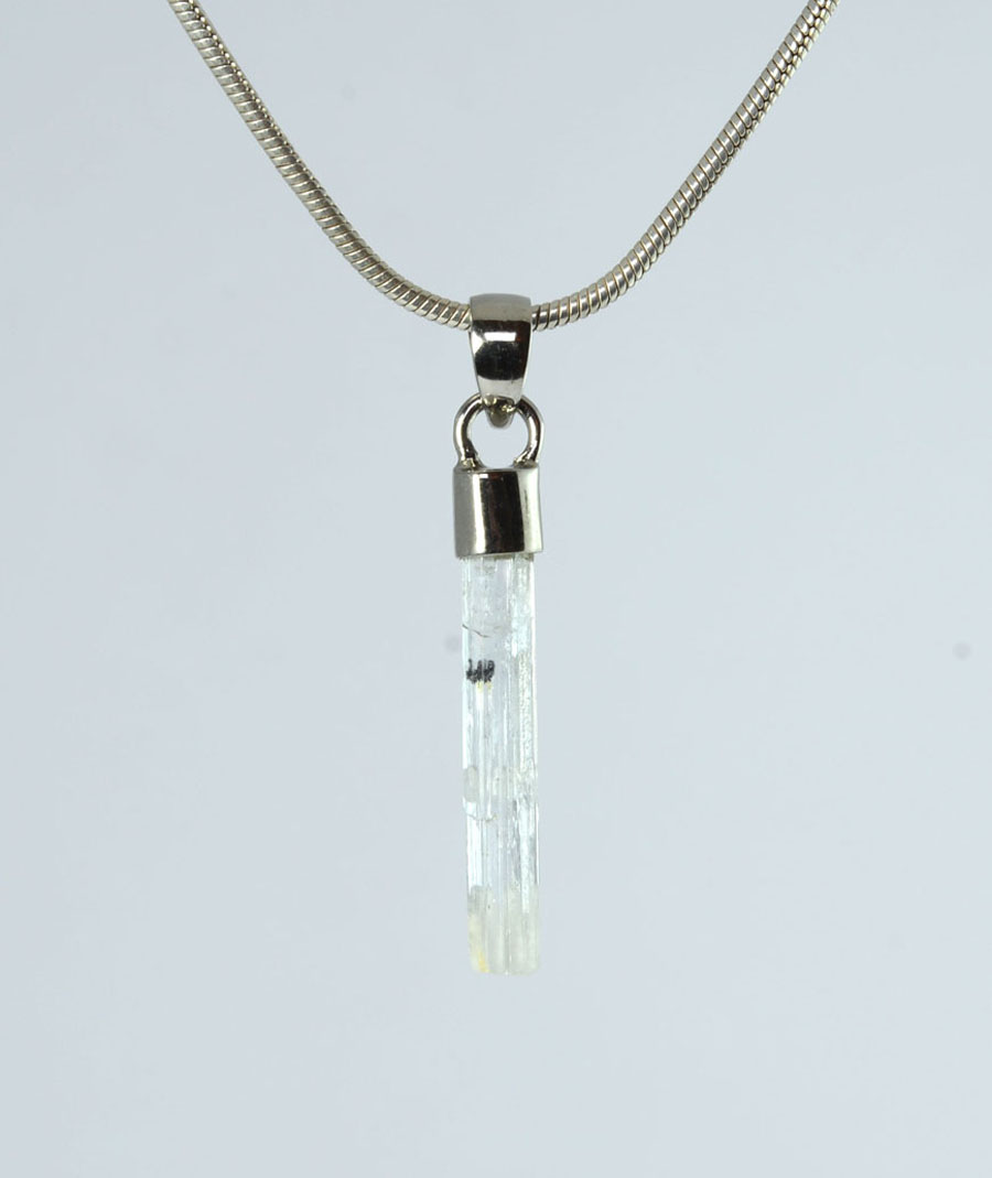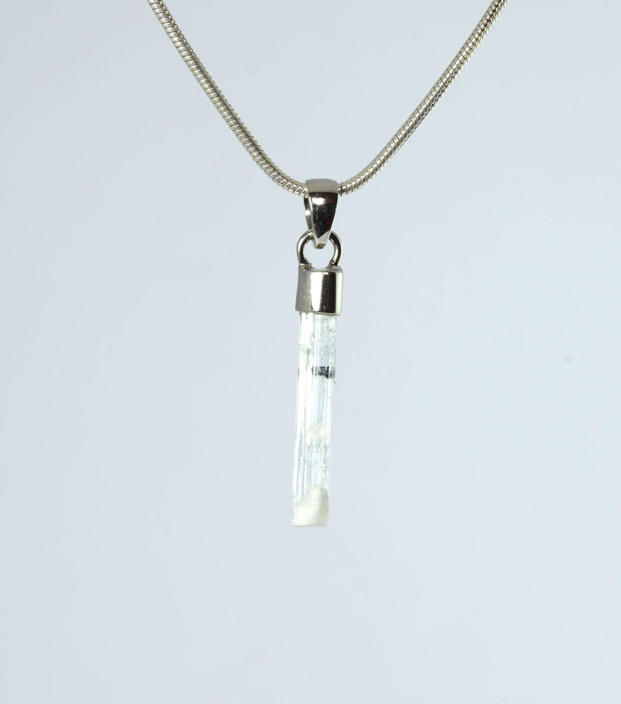Zierlicher, farblos klarer Goshenit-Anhänger mit feinem Kristall Der Stein ist mit einer Kappe in Sterling-Silber eingefasst. Dieser Goshenit-Anhänger ist ein Unikat.