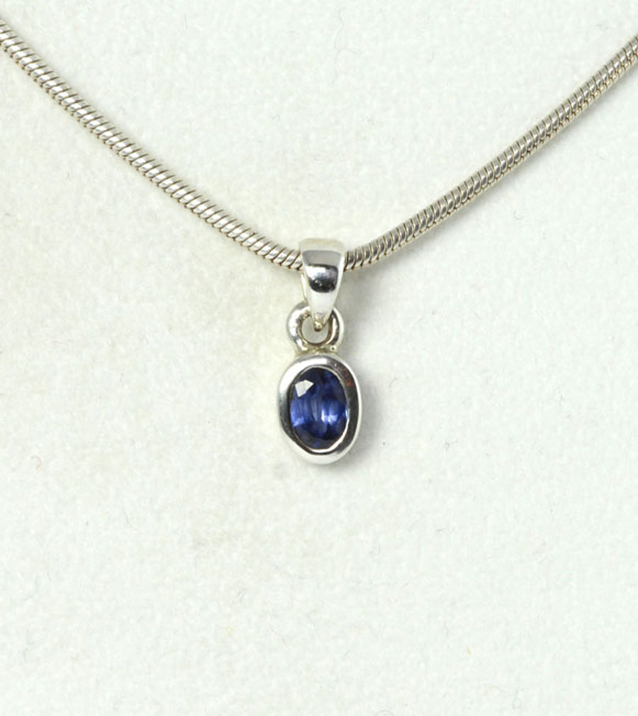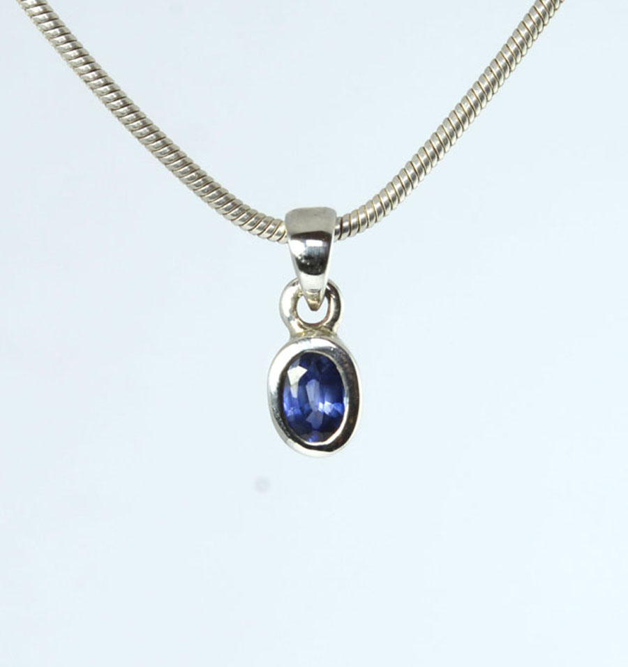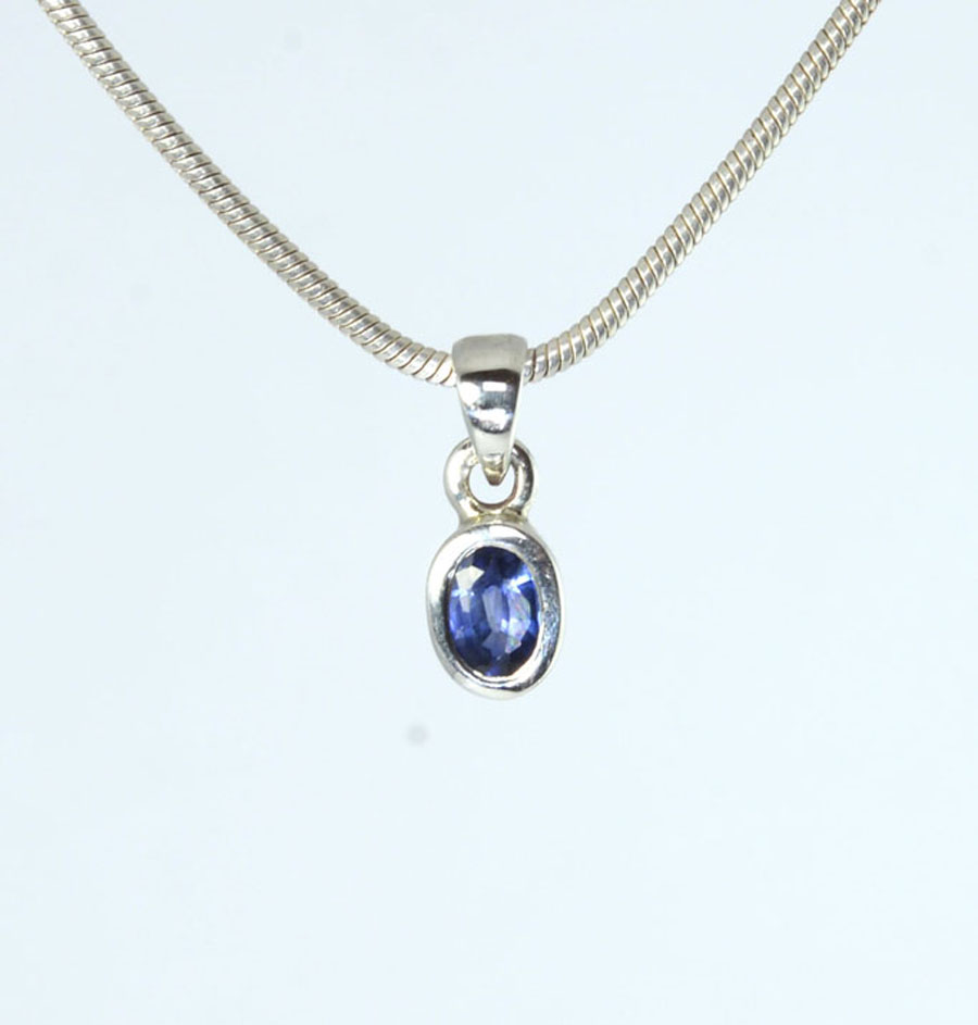Zierlicher, leuchtend blauer Saphir-Anhänger mit facettiertem, ovalem Stein, gefasst in Sterling Silber. Dieser Saphir-Anhänger ist ein Unikat.