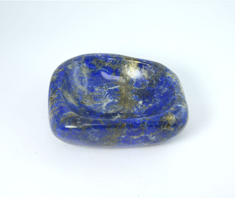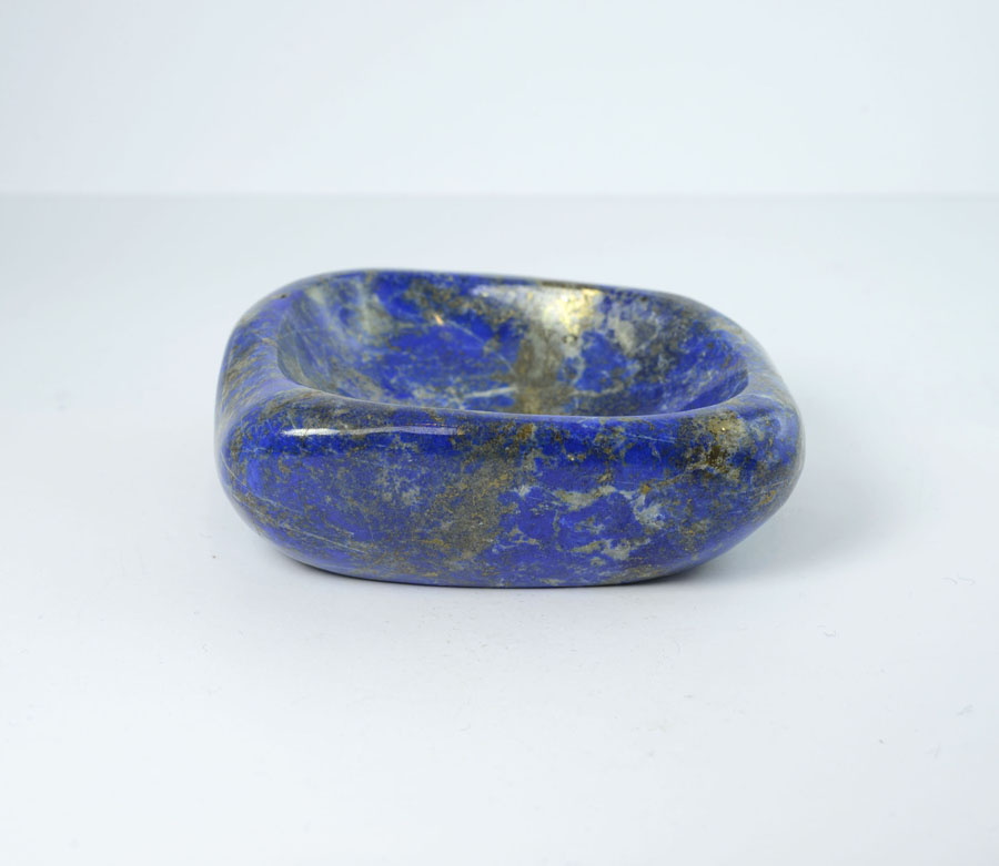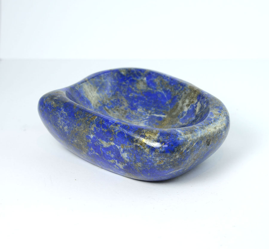Dekorative Schale aus Lapislazuli mit goldenen Pyriteinschlüssen und leuchtend blauer Farbe. Diese Lapislazuli-Schale ist ein Unikat.