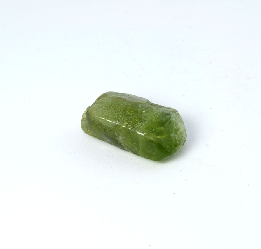 Kleiner, teilweise durchscheinender Peridot Handschmeichler mit leuchtend grüner Farbe. Dieser Peridot Handschmeichler ist ein Unikat.