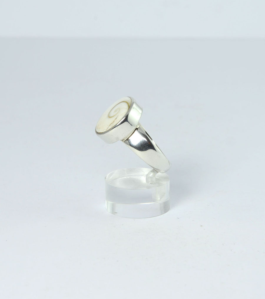 Shivas-Auge-Ring mit rundem Cabochon und feiner, spiarlförmiger Zeichnung, gefasst in Sterling Silber. Dieser Ring mit Shivas Auge ist ein Unikat.