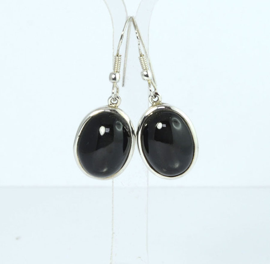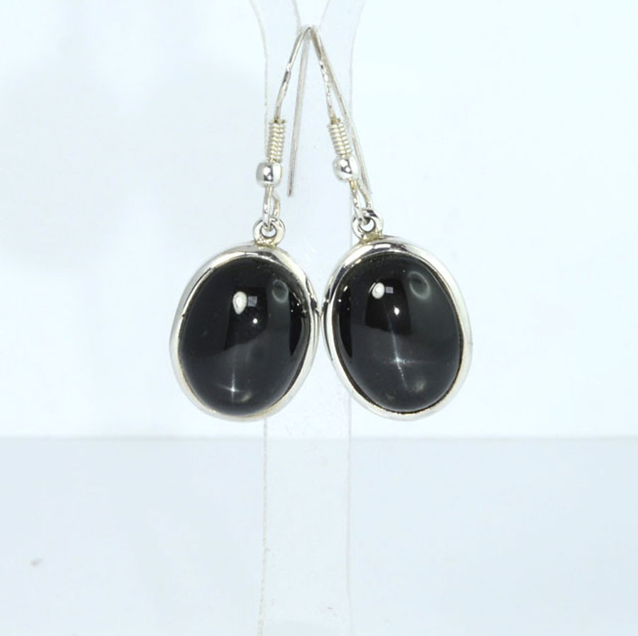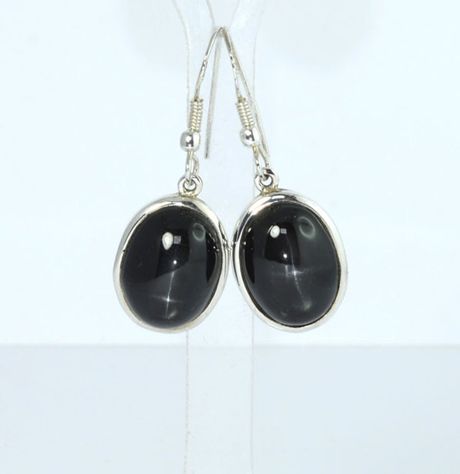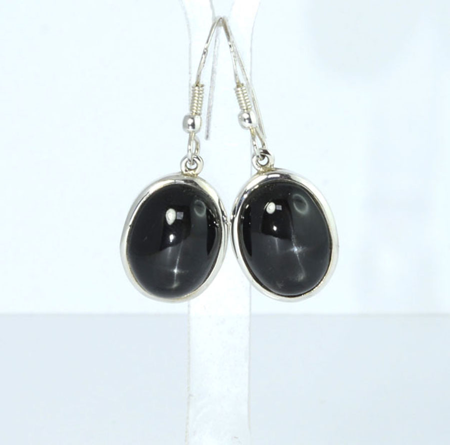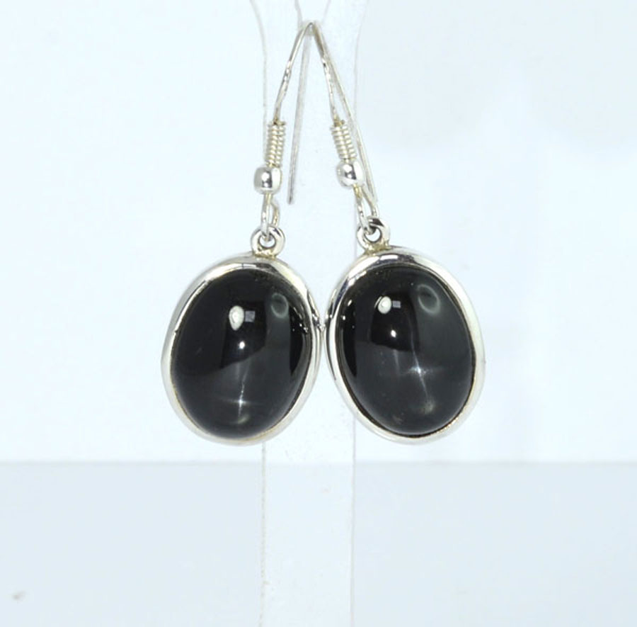 Große Stern-Diopsid-Ohrhänger mit gut sichtbarem Sterneffekt. Die ovalen Cabochons sind in... mehr
