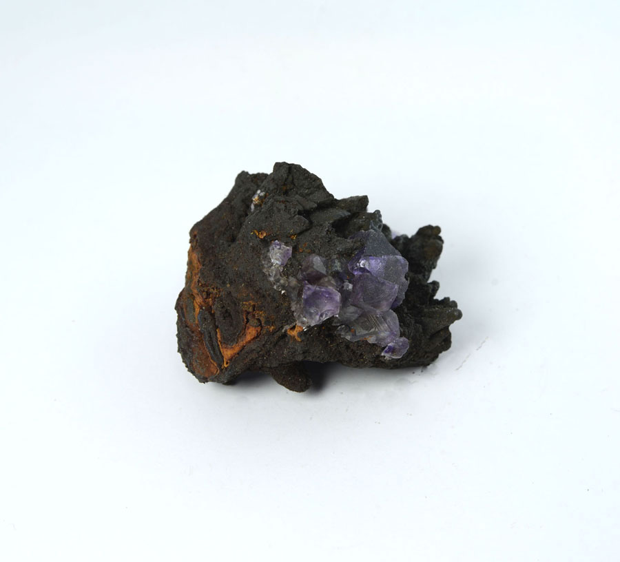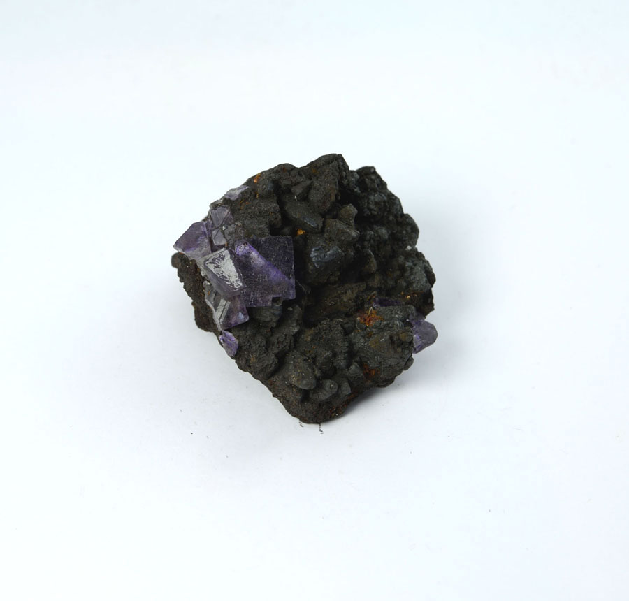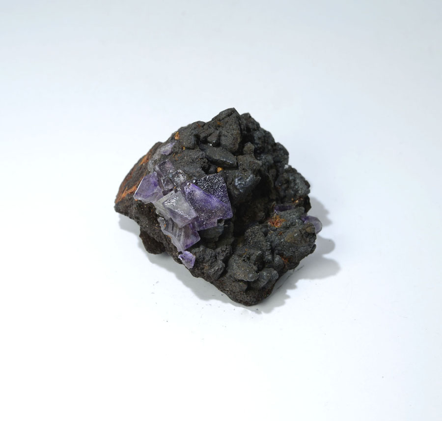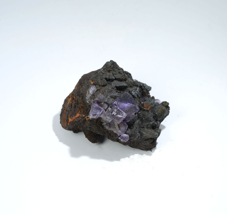 Selten: Sauber auskristallisierter, dunkel violetter Fluorit mit kubischen Kristallen auf dunklem Muttergestein. Diese Fluorit-Stufe ist ein Unikat.