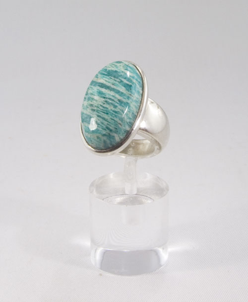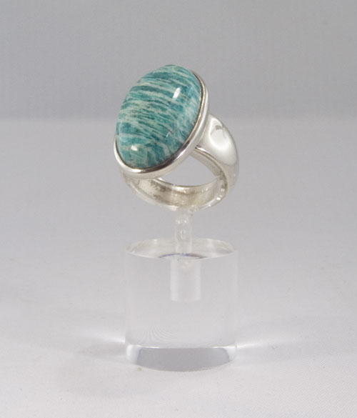 Amazonit-Ring mit Cabochon, Steingröße ca. 23 x 14 mm, Silber 925/ooo, Modell Open Under